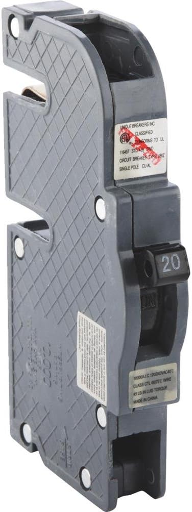 The Unique Breakers Type Z 20-Amp Single-Pole Replacement Circuit Breaker offers you an alternative source for replacement breakers to use in Zinsco load centers. The breaker is a suitable replacement for Zinsco Circuit Breakers, in ordinary locations only, and only with Zinsco panel boards. It has a single pole, a thick format, 120 VAC, and a 60 Hz frequency. View-Pak's line of individual circuit breakers means that you can easily and conveniently replace a circuit breaker to maintain the top performance of your electrical system, and with View-Pak's wide variety you can be sure you'll find the specific circuit breaker you need. This circuit breaker is made by Unique Breakers, Inc. and has been designed to comply with the applicable requirements of the Standard for Molded-Case Breakers and Circuit Breaker Enclosures, as required by the National Electric Code.