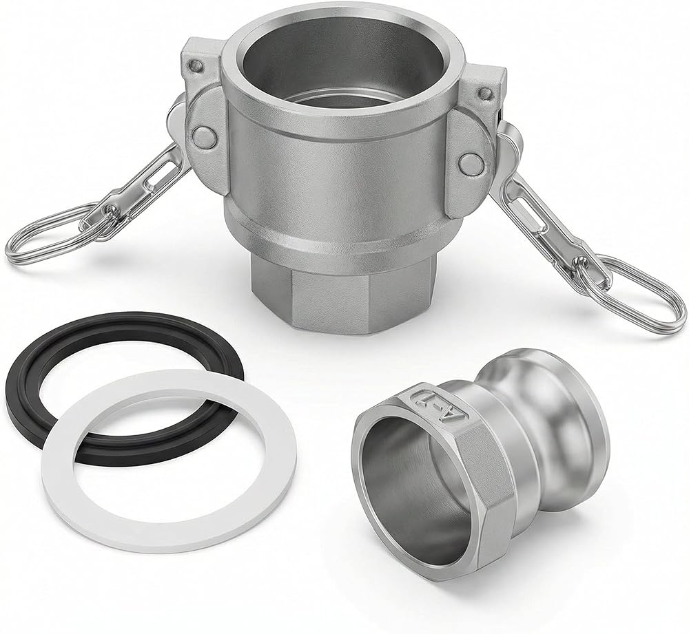 مجموعة تركيب الكامة والأخدود من الفولاذ المقاوم للصدأ 316، مقاس 1 بوصة NPT، قفل كامة أنثى من النوع D وخرطوم أخدود ذكر من النوع A مع حشوات للصناعات البحرية والسيارات والميكانيكية