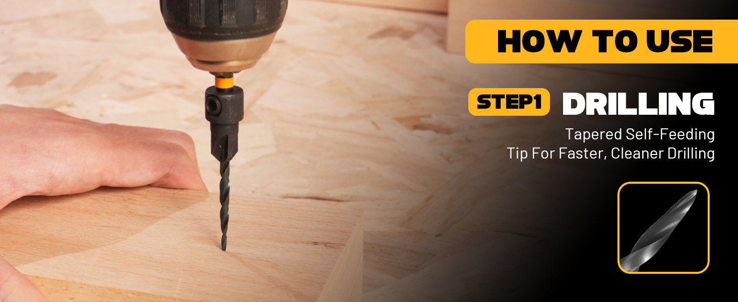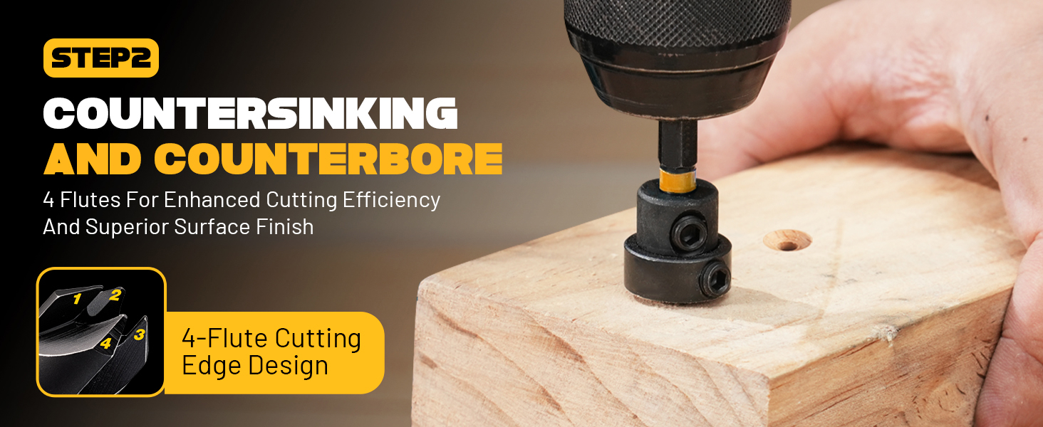 【رأس مدبب بأربعة فلوت】مثقاب حواف مشطوفة دقيق بأربعة فلوت، وحوض غاطس (82 درجة)، وتجويف مضاد في خطوة واحدة. يتم القص بسلاسة وسرعة، مما يترك فتحات نظيفة وملاءمة مثالية للمسمار.