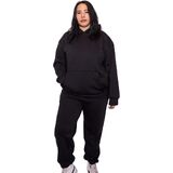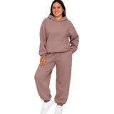 هودي عصري بأكتاف منسدلة وسراويل ركض عالية الخصر - تتميز السترة ذات القلنسوة كبيرة الحجم بمقاس واسع وجيب الكنغر وتصميم بلون ثابت لتوفير أقصى قدر من الراحة والحركة. يتميز بنطال الركض بحزام خصر قابل للتعديل ليناسب جميع الأشكال