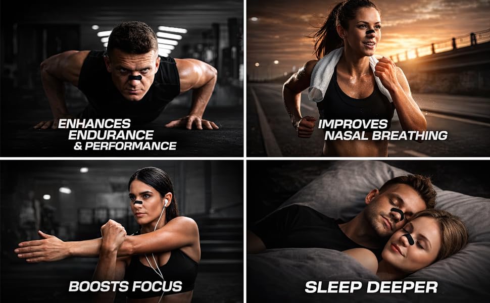 يعزز التنفس الأنفي: يفتح الممرات الأنفية ويزيد من تدفق الهواء، مما يساعدك على التنفس بشكل أعمق وأسهل أثناء التمارين أو النوم أو الاستخدام اليومي. يدعم توصيل الأكسجين بشكل أفضل لتحسين الأداء وتقليل التعب.