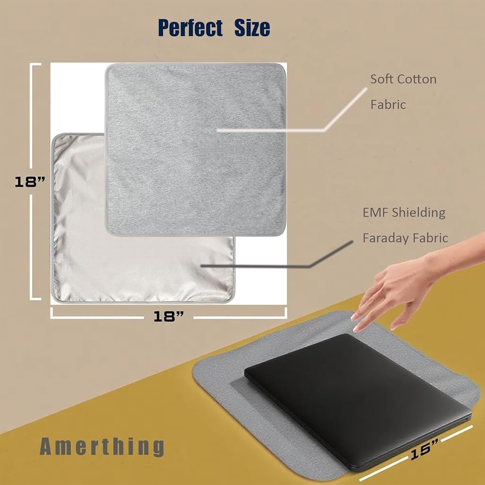 بطانية أميرثينج فاراداي، بطانية حماية كهرومغناطيسية أثناء استخدام الكمبيوتر المحمول والهاتف، نسيج فاراداي الواقي من الموجات الكهرومغناطيسية (18 بوصة × 18 بوصة)