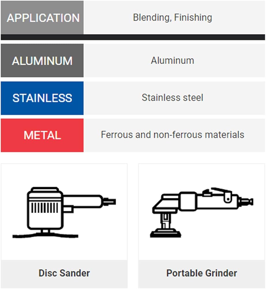 • Very Fine: Excellent for blending surface imperfections, final finishing and preparation prior to coating, and helps create near mirror finish when followed with SAIT buffing discs and compounds