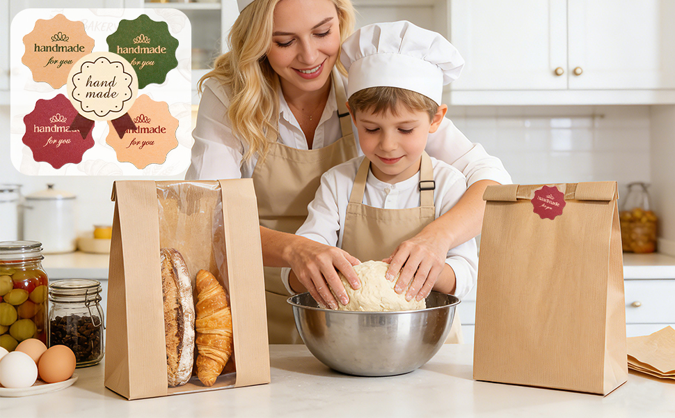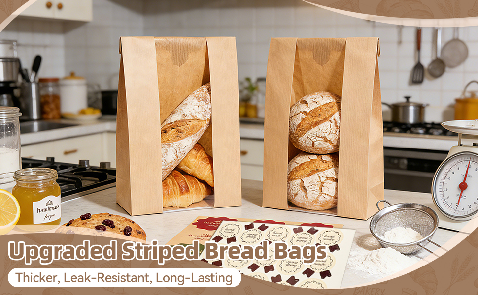جودة عالية وآمنة: أكياس الخبز الخاصة بنا للخبز المنزلي مصنوعة من ورق كرافت عالي الجودة صالح للطعام. إنها مجهزة بملصقات مصنوعة يدويًا، مما يوفر إغلاقًا قويًا مقاومًا للغبار والرطوبة، مما يحافظ على طعامك طازجًا ولذيذًا لفترة أطول.