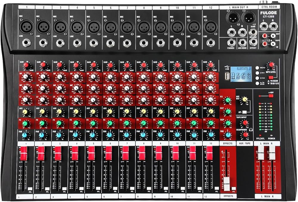 مدخلات متعددة الاستخدامات وتحكم احترافي: يوفر خلاط الصوت هذا مدخلات XLR و1/4 بوصة مع طاقة فانتوم +48 فولت، مما يدعم كلاً من الميكروفونات الديناميكية والمكثفة. تتضمن كل قناة معادل صوت ثلاثي النطاق، ومؤشر ذروة LED، ومقياس مستوى ستيريو 10 أجزاء لتشكيل صوت دقيق ومزج احترافي.