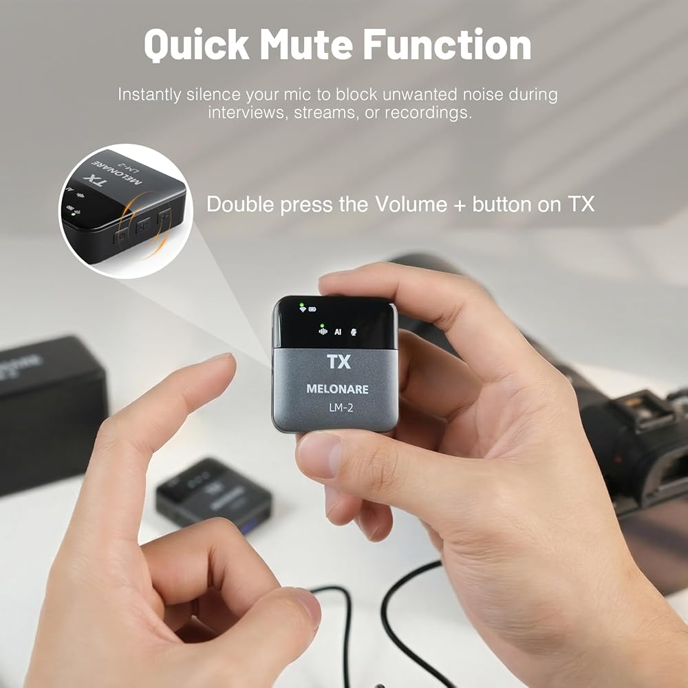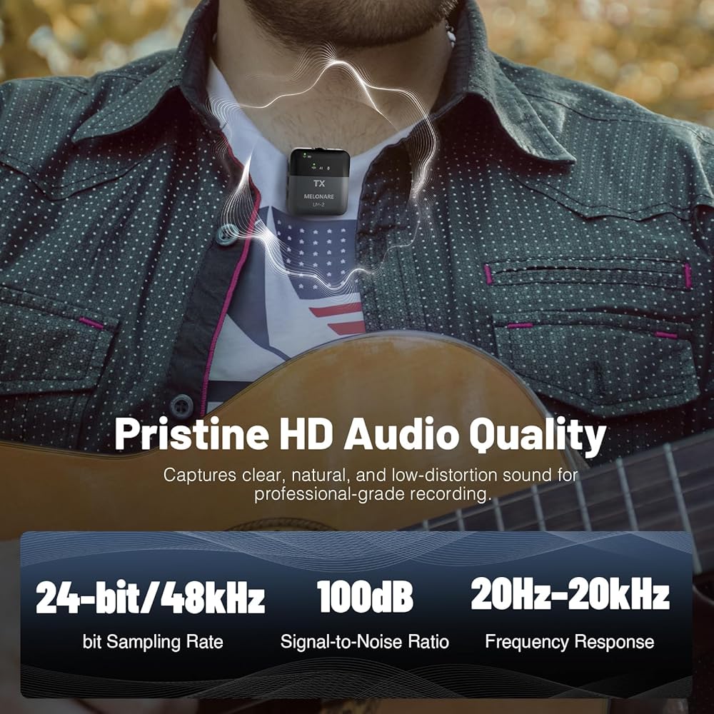 صوت عالي الدقة بدرجة الاستوديو: يتميز باستجابة تردد كاملة 20 هرتز - 20 كيلو هرتز مع إخراج منخفض التشوه، يوفر الميكروفون اللاسلكي صوتًا طبيعيًا عالي الدقة مع تفاصيل صوتية ممتازة، بينما تمنحك وظيفة كتم الصوت السريعة تحكمًا فوريًا لمنع الضوضاء غير المرغوب فيها.