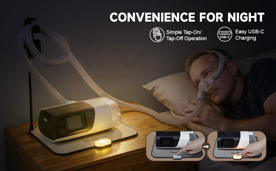 • ضوء ليلي مدمج يعمل باللمس لسهولة الاستخدام أثناء الليل: مصباح لمس قابل لإعادة الشحن (USB-C) مدمج في الدرج. ما عليك سوى النقر للتشغيل/الإيقاف - لا داعي للبحث عن هاتفك أو تشغيل الأضواء الساطعة عند ضبط قناعك أو جهازك ليلاً