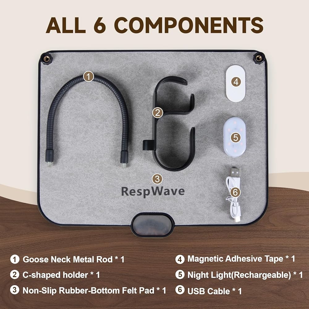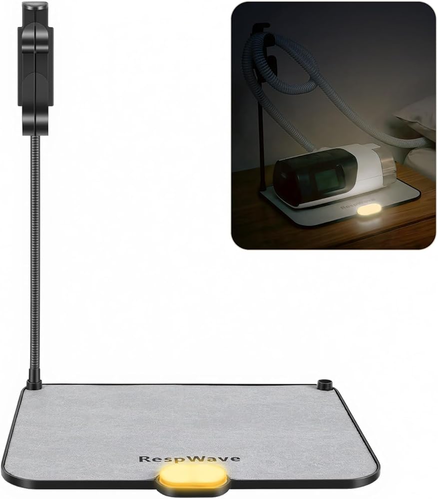 حامل خرطوم CPAP منظم بجانب السرير مع حصيرة ماصة وإضاءة ليلية، شماعة خرطوم CPAP مع خطاف قابل للسحب لأنبوب وآلة قناع CPAP، مستلزمات وإكسسوارات CPAP، أسود
