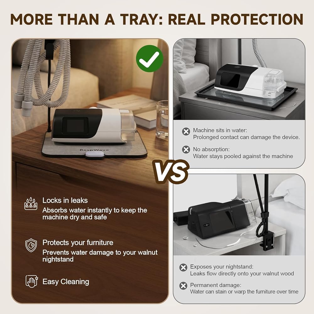 • حصيرة ماصة مع صينية مقاومة للتسرب - الحارس الصامت لأثاثك: تمتص ما يصل إلى 50 مل من الماء في أقل من 3 دقائق. تمتص السجادة التكثيف من الأنبوب أو حجرة المياه بسرعة، بينما تلتقط الصينية المقاومة للتسرب الموجودة بالأسفل أي فائض - مما يحافظ على المنضدة جافة تمامًا وتمنع البقع أو الاعوجاج.