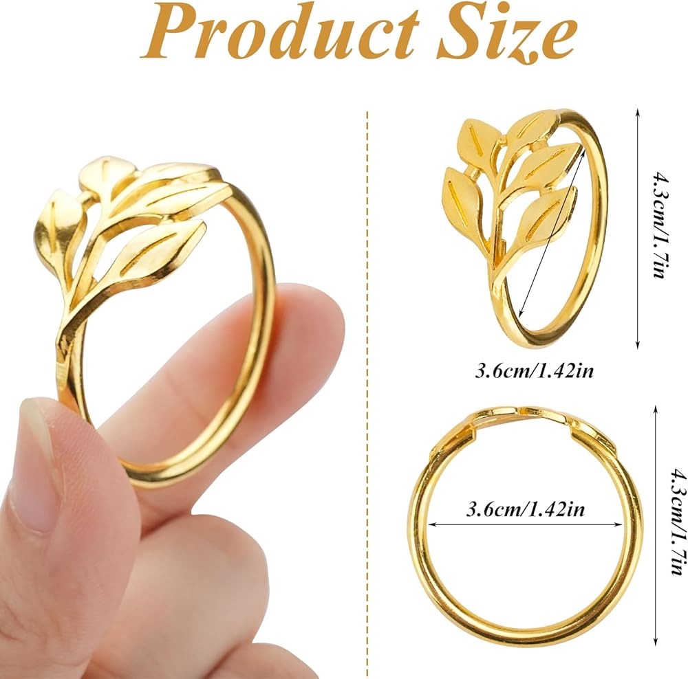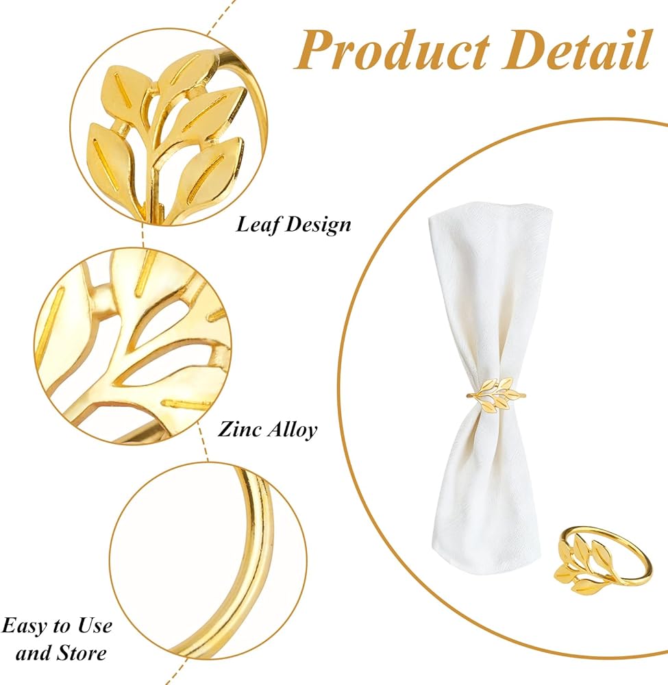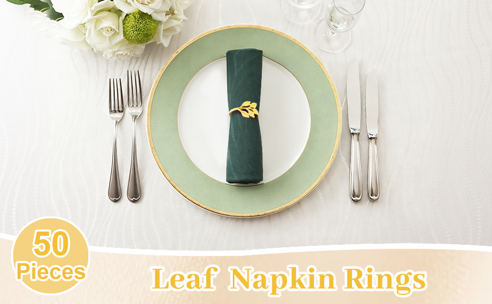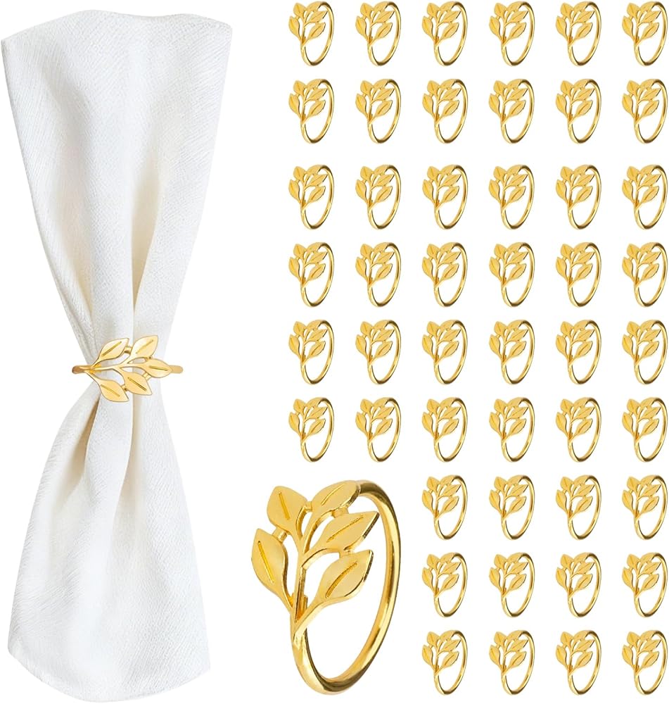 CEYAZYE حلقات منديل ذهبية مجموعة من 50، حامل مناديل أوراق الشجر أبازيم لديكور الطاولة، حلقة رقيقة من سبائك الزنك اللامعة لحفلات العشاء وحفلات الزفاف والمطبخ وعيد الشكر وعيد الميلاد والمناسبات الخاصة