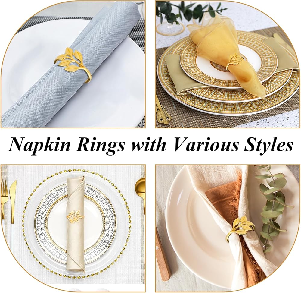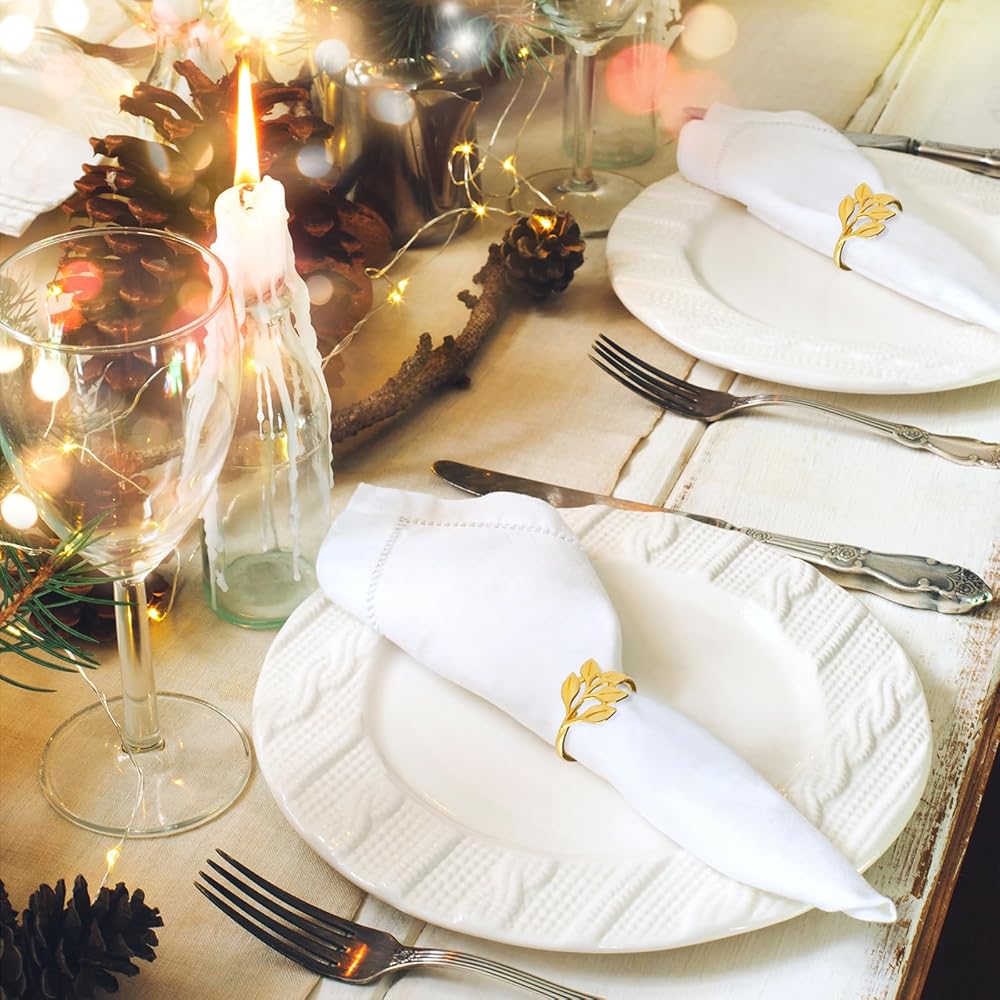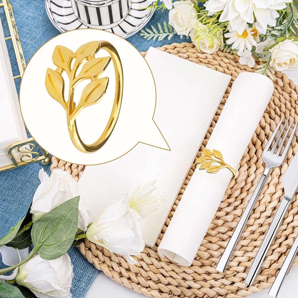 CEYAZYE حلقات منديل ذهبية مجموعة من 50، حامل مناديل أوراق الشجر أبازيم لديكور الطاولة، حلقة رقيقة من سبائك الزنك اللامعة لحفلات العشاء وحفلات الزفاف والمطبخ وعيد الشكر وعيد الميلاد والمناسبات الخاصة