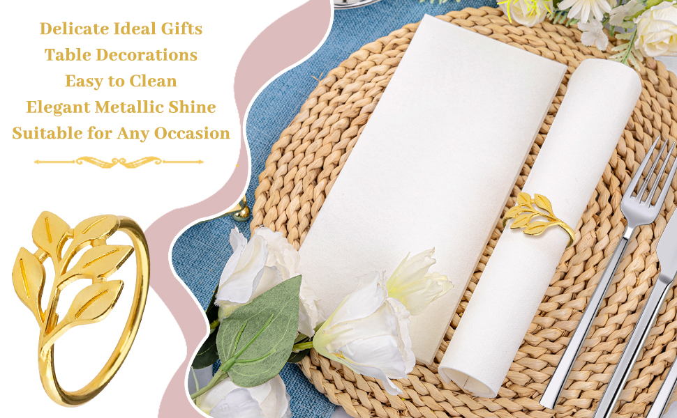 • [استخدام متعدد المشاهد] تحتوي حلقات المناديل الذهبية هذه على مجموعة واسعة من التطبيقات وهي مناسبة لمختلف المناسبات. سواء كانت مهرجانات خاصة مثل حفلات الزفاف والذكرى السنوية وعيد الميلاد ورأس السنة الجديدة أو العشاء العائلي اليومي وتجمعات الأصدقاء، يمكن أن تضيف حلقات المناديل هذه جوًا احتفاليًا قويًا إلى طاولة الطعام.