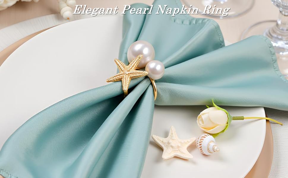 • تصميم جميل لإعدادات الطاولة: يتميز حامل حلقة المناديل الذهبي هذا بلون ذهبي دافئ مشرق وجذاب. تضيف اللآلئ لمسة من الأناقة، وتحول إعداد طاولتك إلى تحفة جمالية