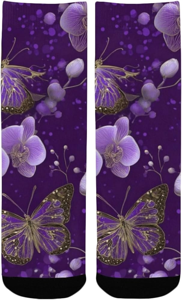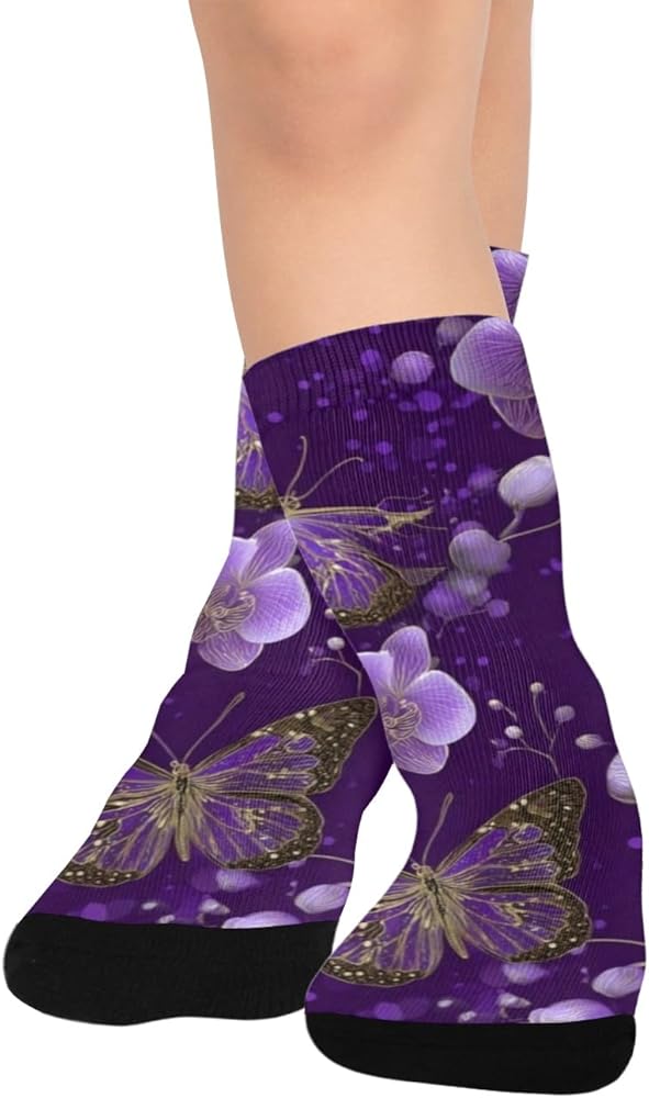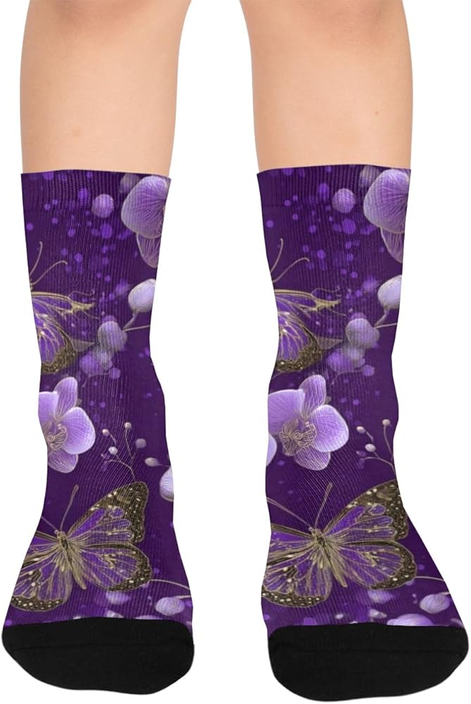 جوارب بيربل باترفلاي بلوم آرت للمشي لمسافات طويلة - جوارب شتوية حرارية سميكة دافئة للأولاد والبنات للمدرسة، والارتداء اليومي والأنشطة الخارجية