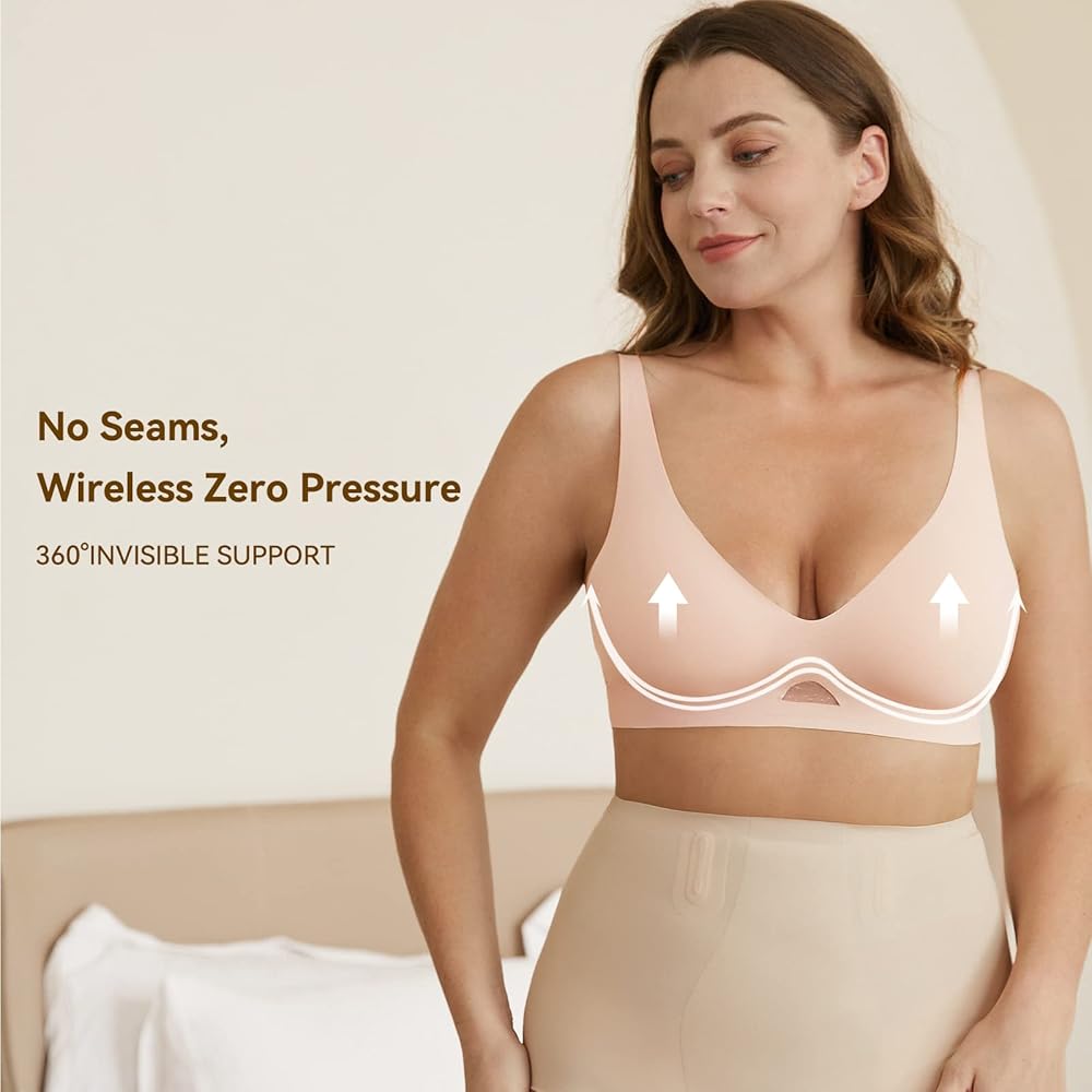 حمالة صدر لاسلكية بدون خياطة من Niidor برقبة على شكل حرف V، حمالة صدر مريحة غير مرئية تسمح بمرور الهواء بدون أسلاك، حمالة صدر رفيعة وناعمة للاستخدام اليومي للنساء