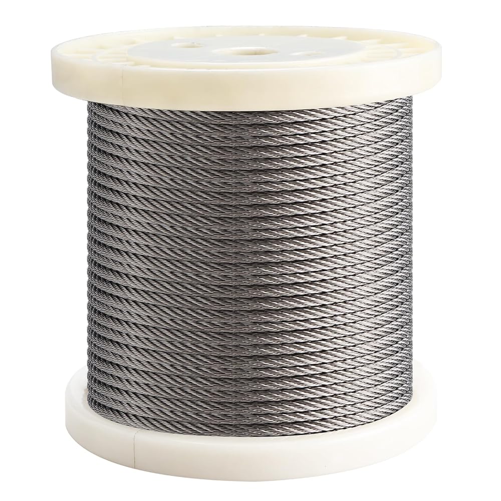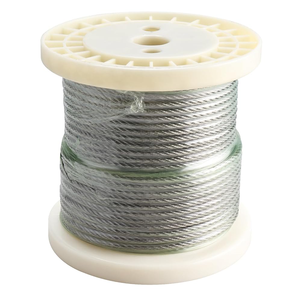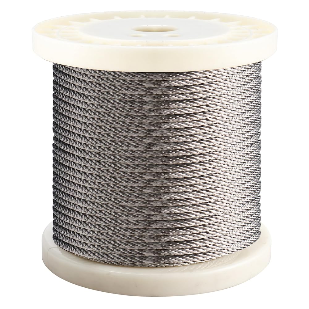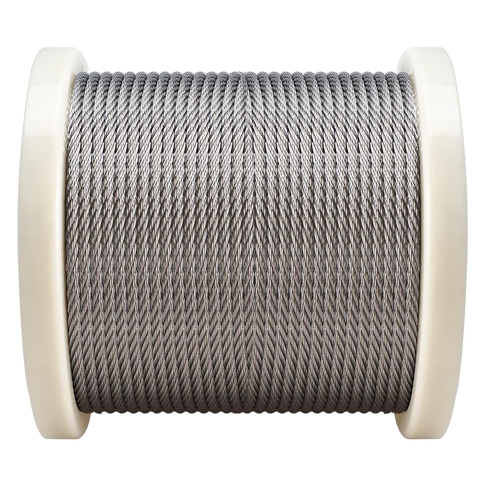 1/5 بوصة (5 مم) سلك حبل من الفولاذ المقاوم للصدأ طول الكابل 100 قدم، حبل سلك فولاذي في الهواء الطلق لأنظمة درابزين سطح السفينة