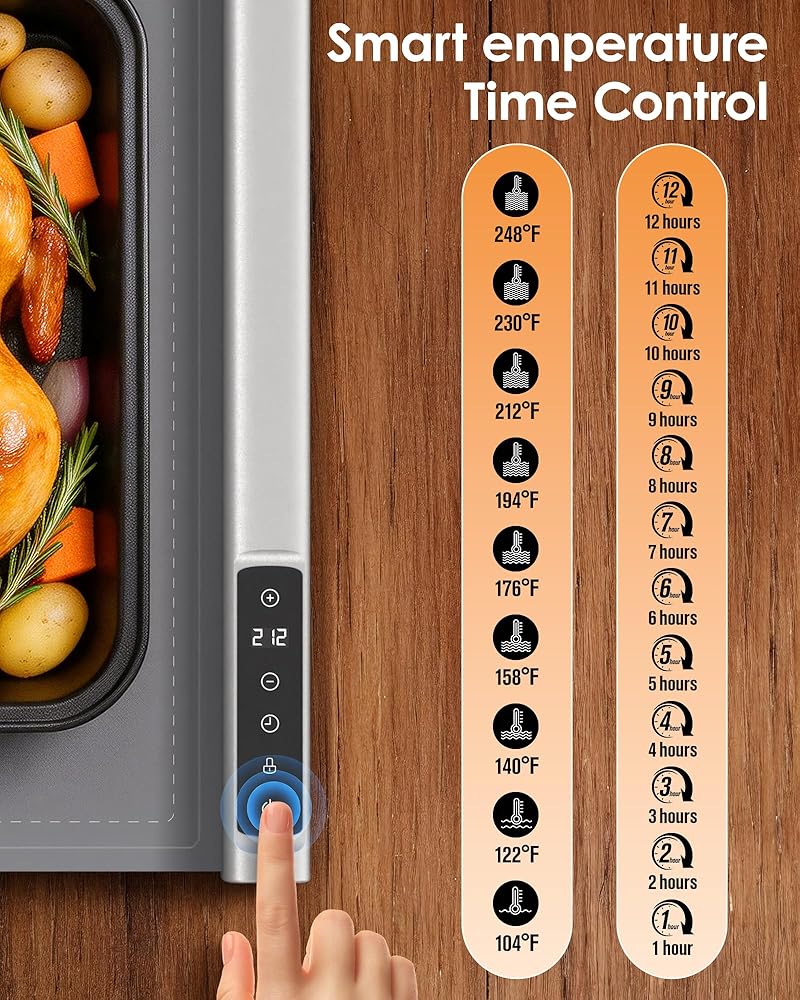 • 【1-12 Hour Adjustable Timer】Built-in timer maintains constant heat for up to 12 hours, eliminating cold food concerns and creating delightful dining experiences for you and loved ones. Ideal for serving piping hot holiday meals at catering events, buffet services, family gatherings, outdoor picnics, and more.