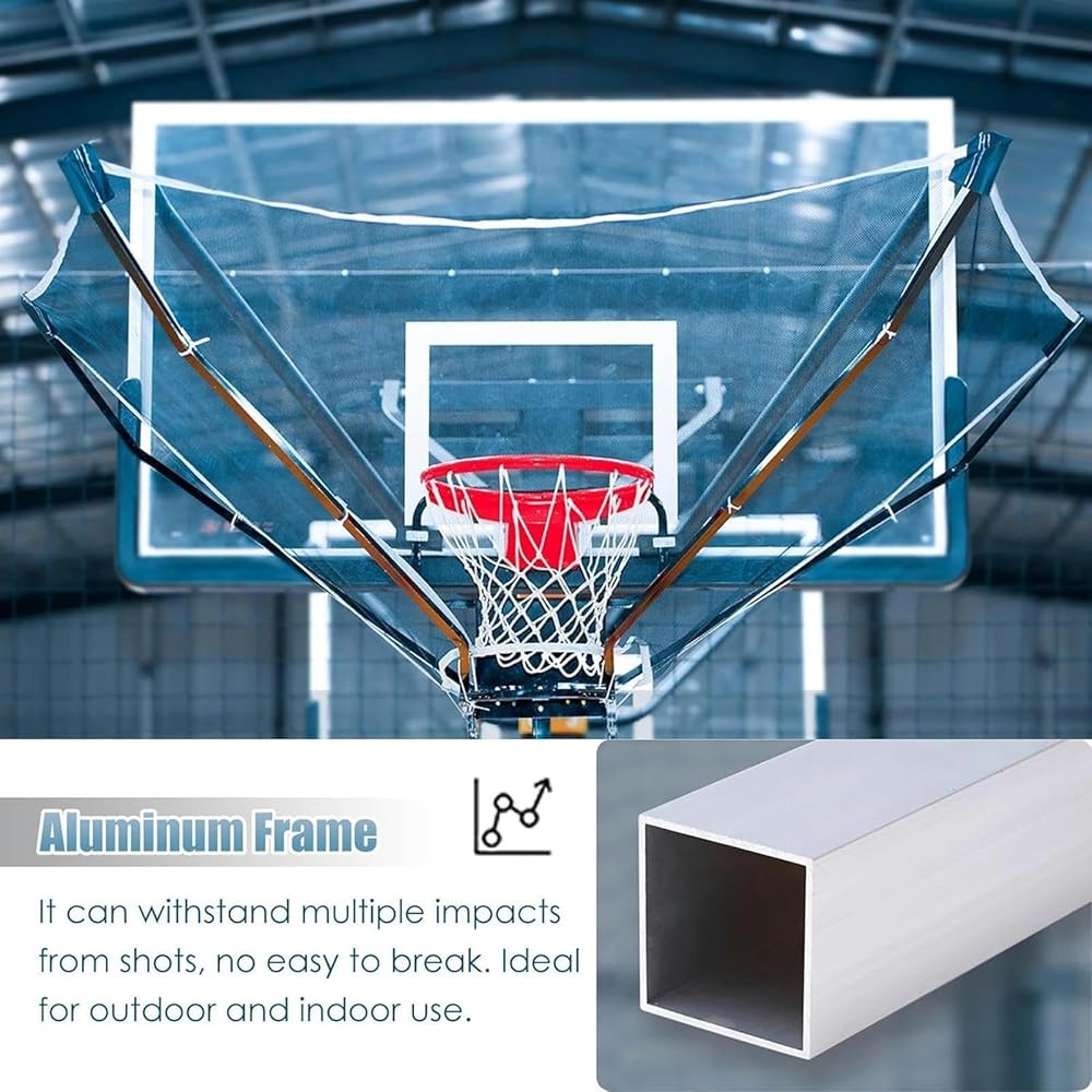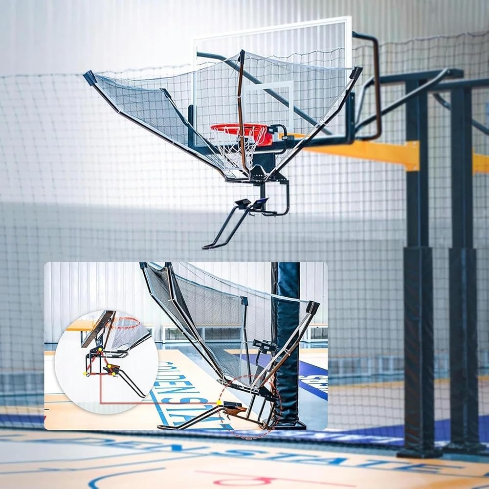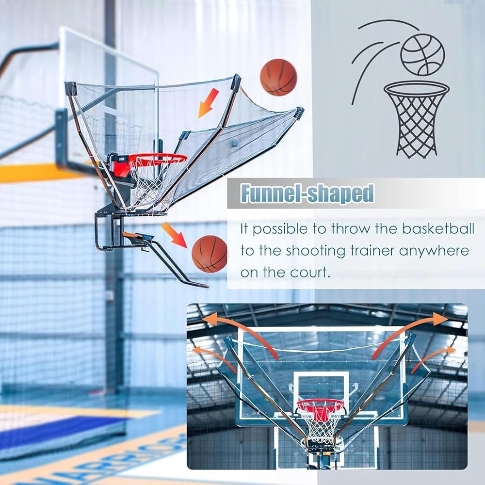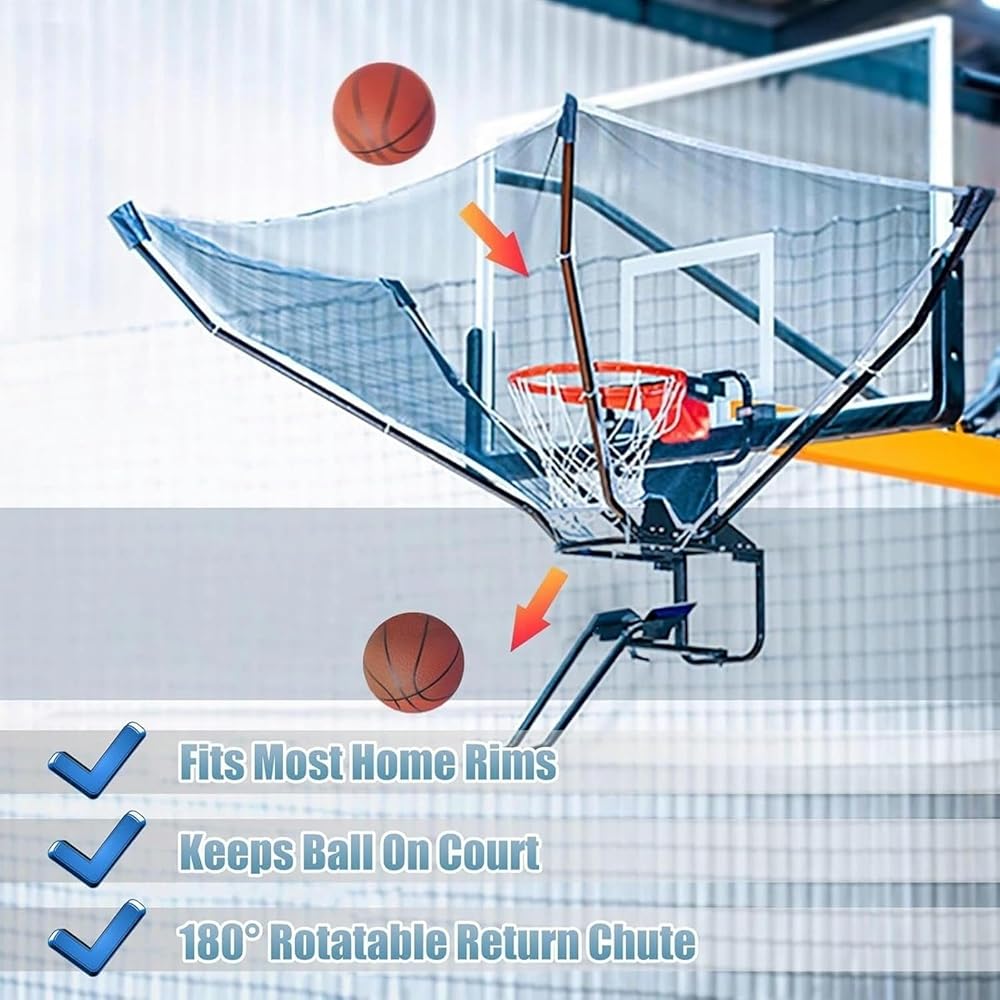 - The basketball rebounder is designed for practice efficiency and technique improvement. The basketball hoop return system will return the ball to shooter, help the shooter maintain the shooting state, and adjust technical actions. It's best to use two balls at the same time, which will make the training effect more obvious. Perfect for basketball enthusiasts.