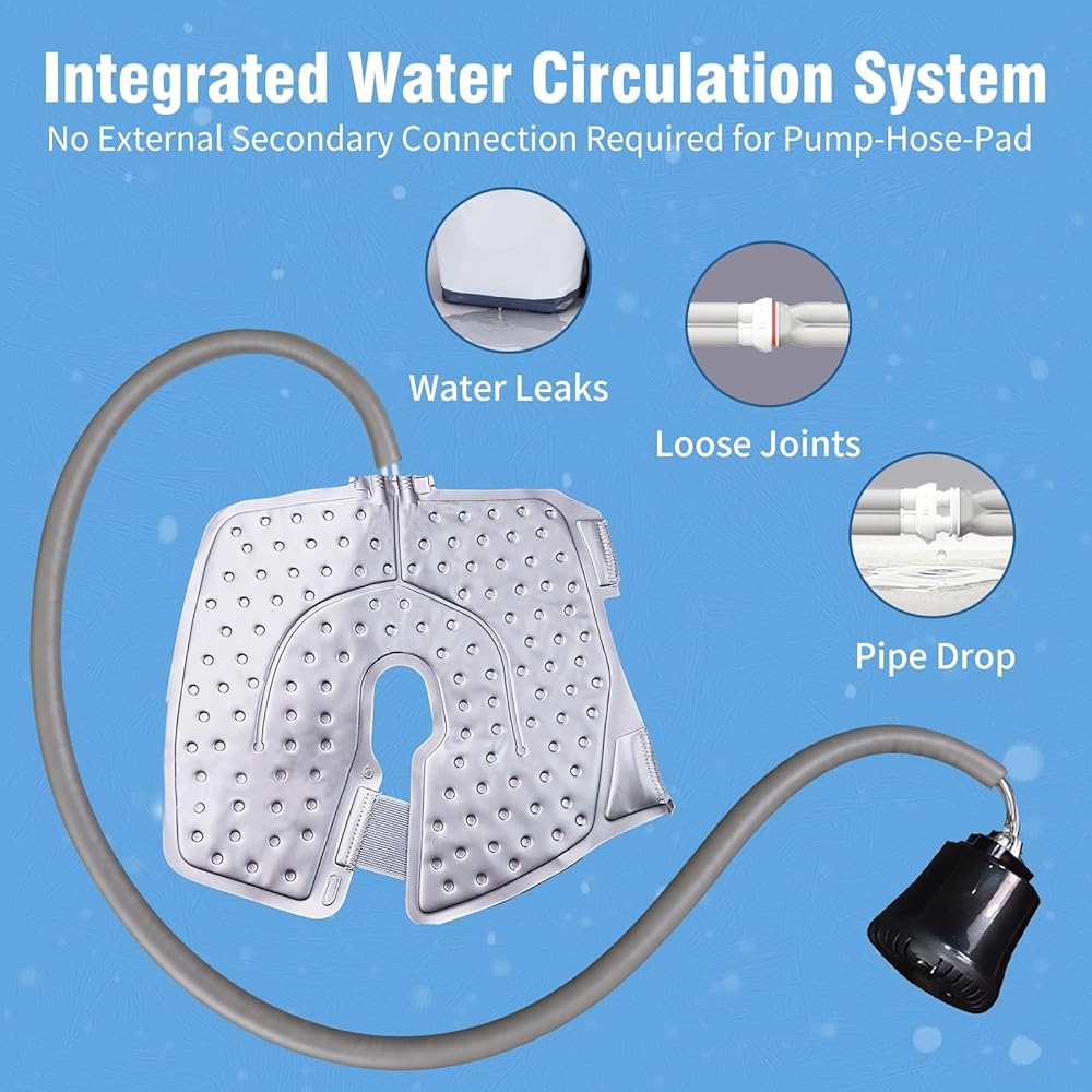 【No Leaks, No Interruptions】Innovative integrated circulation link design, entire system of water pump—hose—gasket is seamlessly integrated, solve the common problems of traditional cold compress machines. No more interruptions due to water leakage, pipe drop, loose joints and other problems, Enjoy smooth, uninterrupted therapy.
