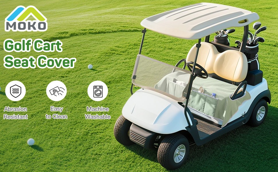 أغطية مقاعد عربة الجولف من موكو، بطانية منشفة عالمية لمقعد عربة الجولف من أجل EZGO، ياماها، سيارة النادي والمزيد من العربات ذات المقعدين مع 4 جيوب أمامية، ملحقات جولف عالمية، غير قابلة للانزلاق وسهلة التنظيف، أخضر