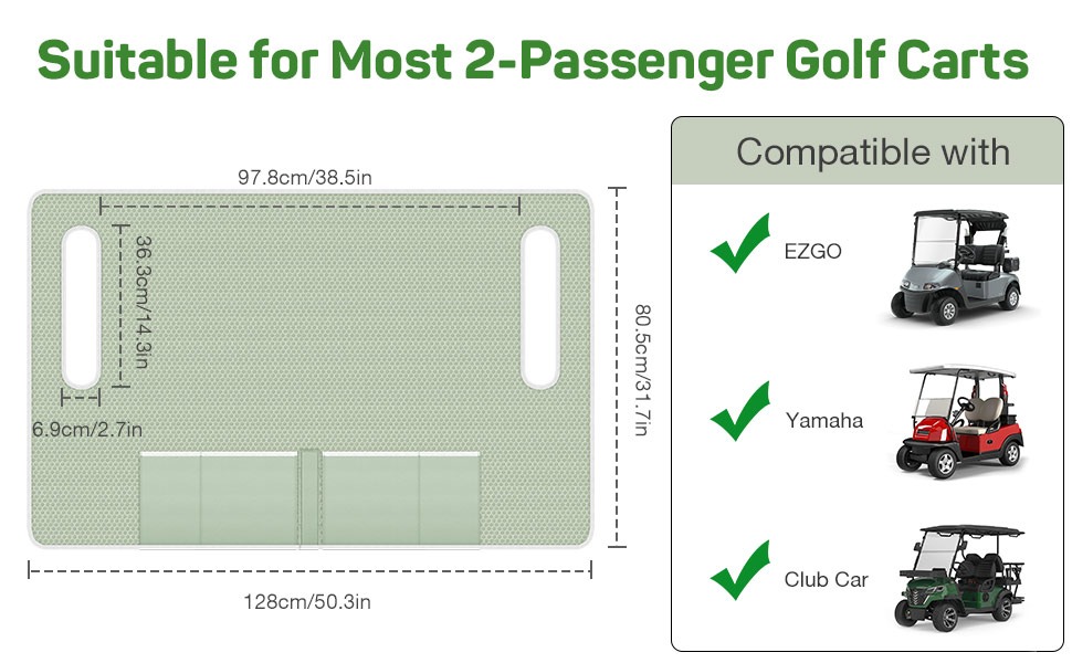 الحجم العالمي: يبلغ مقاس غطاء عربة الجولف الخاص بنا 50.5 بوصة طولًا × 31.7 بوصة عرضًا (128 سم × 80.5 سم) وهو متوافق مع معظم موديلات السيارات. يمكنه حماية مقاعد السيارة بشكل فعال من الخدوش وشيخوخة الشمس، مما يطيل عمر خدمة مقاعد السيارة. انتبه: يرجى التأكد من حجم عربة الجولف الخاصة بك قبل الشراء