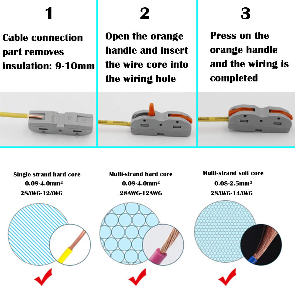 موصل صامولة رافعة CESFONJER، مجموعة متنوعة من موصلات الأسلاك المدمجة، SPL-1 واحد إلى واحد من نوع الربط الطرفي السريع متعدد الوظائف سلك ناعم وصلب عالمي (42 حزمة)