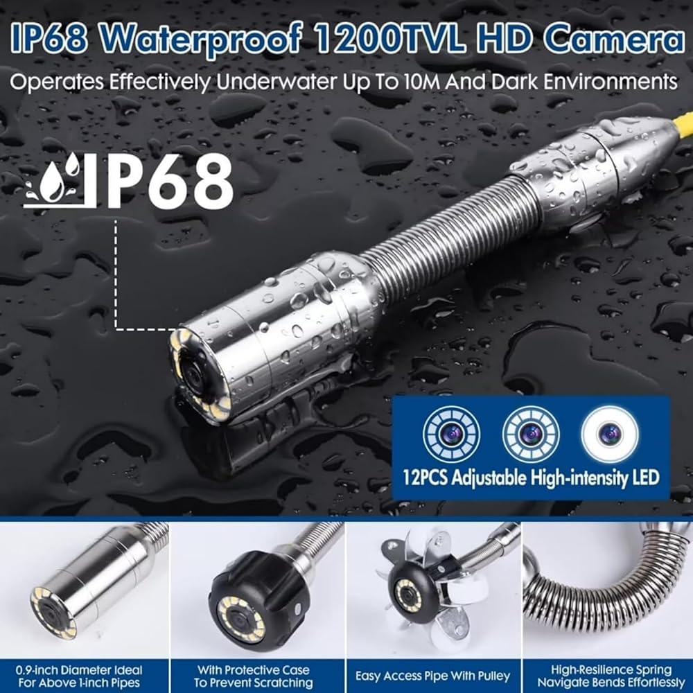 يمكن للمصابيح البيضاء القابلة للتعديل المكونة من 12 قطعة في رأس كاميرا الصرف الصحي هذه أن تضيء الجدار الداكن أو الأنابيب أو المجاري أو الصرف أو الفتحة أو القناة أو النفق.