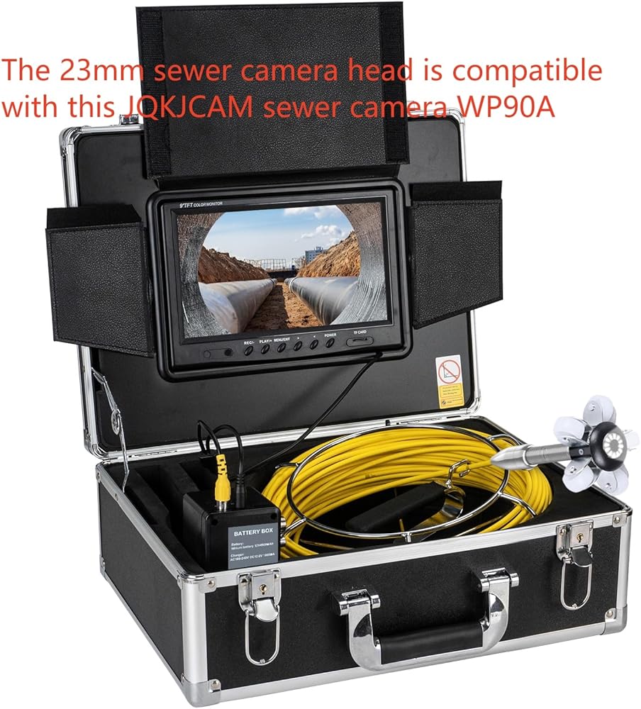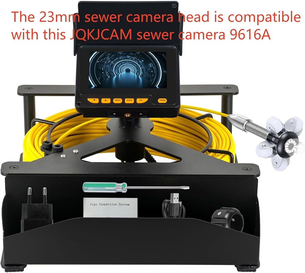 ملاحظة: رأس كاميرا الصرف الصحي مقاس 23 مم مناسب لكاميرا الصرف الصحي 9622A 9604A، WP70A، WP90A، 9600A، 9616A، 9603A. إذا كنت تريد كاميرا بدقة 1080 بكسل لـ SP09A أو 512 هرتز أو نظام كاميرا الصرف الصحي ذاتي التسوية، فيرجى عدم طلبها. إنه مخصص فقط لنظام كاميرا فحص الصرف الصحي JQKJCAM. إذا كانت كاميرا تصريف المجاري الخاصة بك ليست من JQKJCAM، فيرجى الاتصال بنا للتحقق مما إذا كانت متوافقة مع جهازك. لا تضع طلبًا حتى يتم تأكيد التوافق.