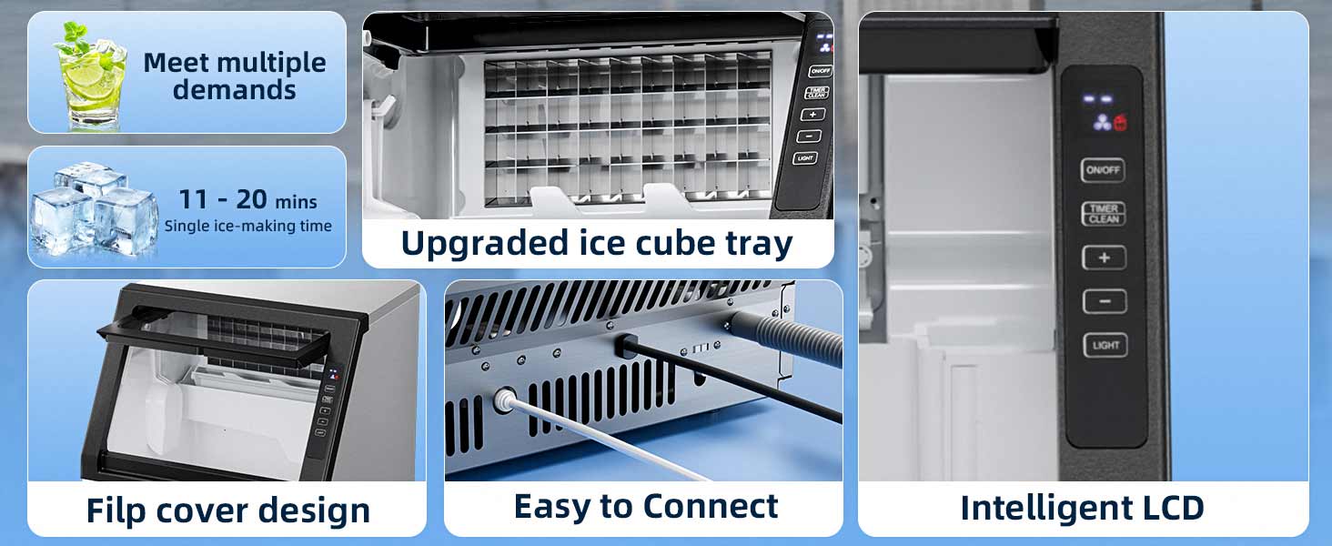• الاستخدام التجاري والمنزلي متعدد الاستخدامات: معتمد من ETL للسلامة، يناسب صانع الثلج هذا إعدادات متنوعة - من الحانات والمطاعم والفنادق إلى المطابخ المنزلية والمناسبات المكتبية. يضمن أدائها الموثوق به إمدادًا ثابتًا بالثلج عالي الجودة.