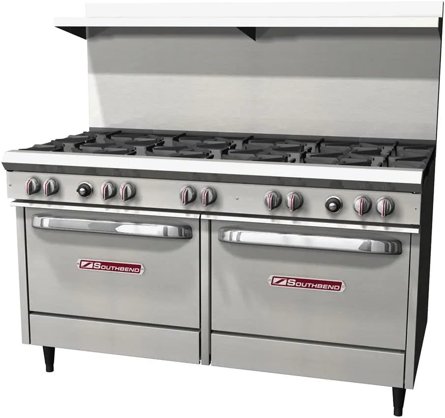مجموعة مطاعم Southbend S60AC-4GL S-Series مقاس 60 بوصة تعمل بالغاز مع (2) شعلات مفتوحة وشواية يسار مقاس 48 بوصة و(1) فرن حراري و(1) قاعدة خزانة