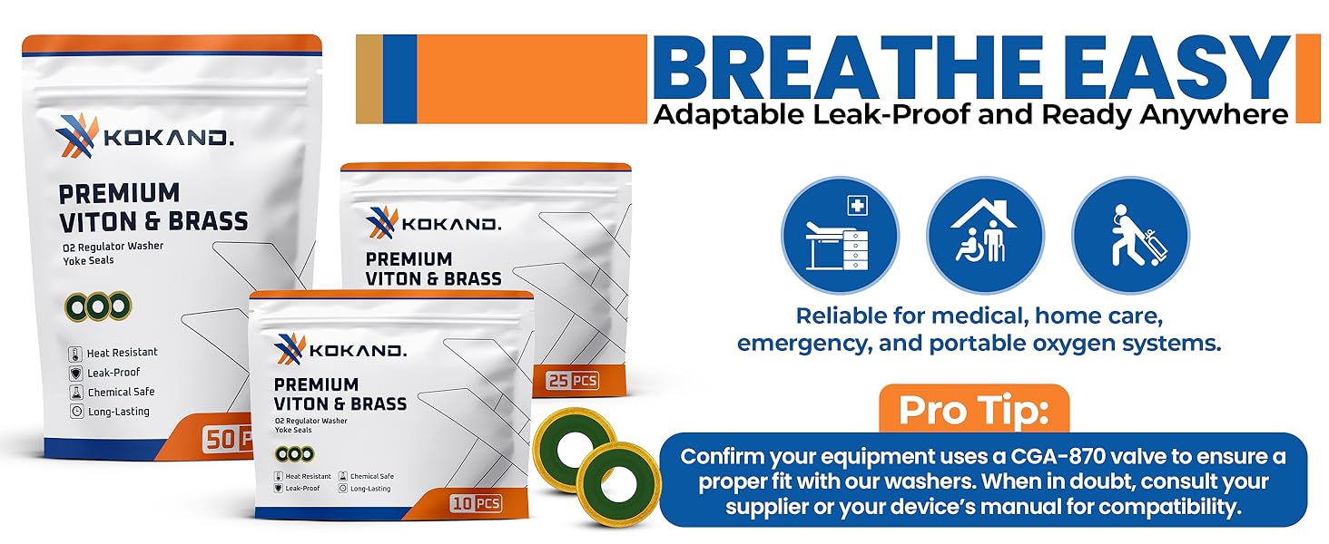 𝗖𝗚𝗔-𝟴𝟳𝟬 𝗙𝗜𝗧: مصممة للتوافق مع أنظمة CGA-870، تناسب أختام الغسالة هذه معظم منظمات الأكسجين المحمولة. رائعة للاستخدام في غسالات منظم O2 المستخدمة في البيئات الطبية والطوارئ والرعاية المنزلية.