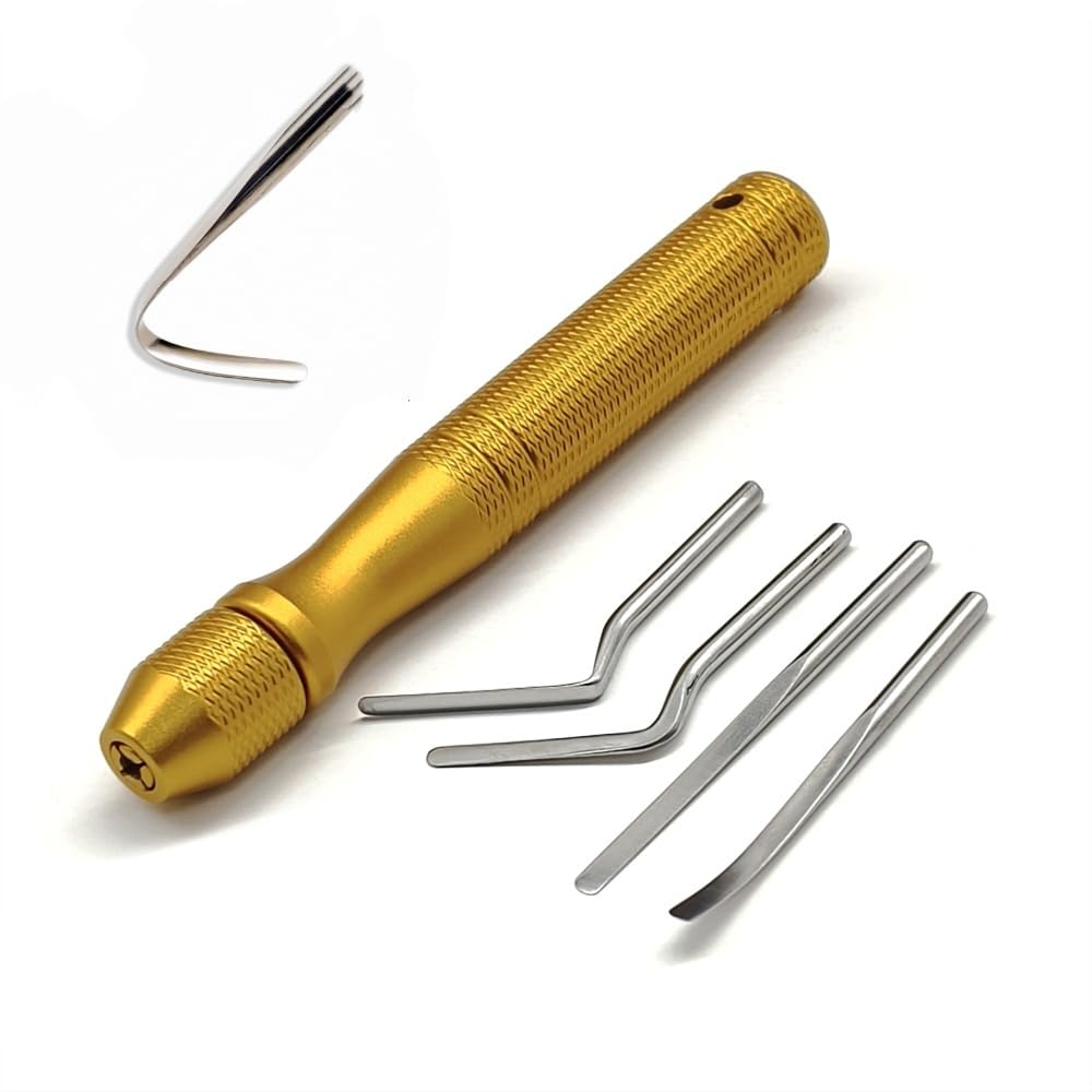 Dental Elevator Flex Periotome Root Tooth Extraction Screw Dental Root Screw Extractor ----Golden Color Handle, Tip material is Titanium ----4 Modles tips ----Tips can be replaced ---- Packing Way: 1 piece handle+ 4 pcs replaced tip