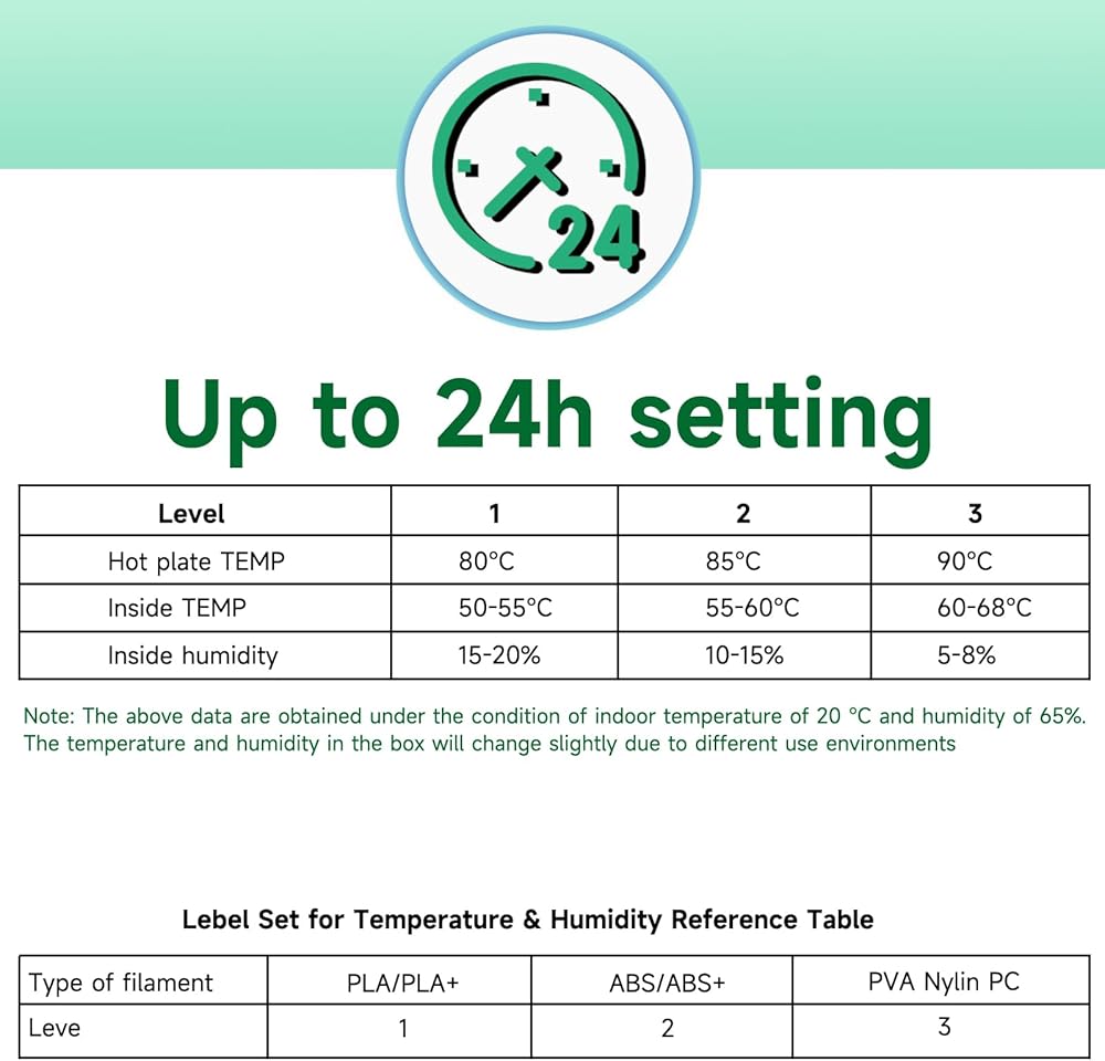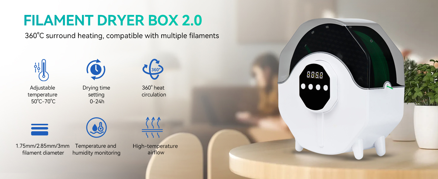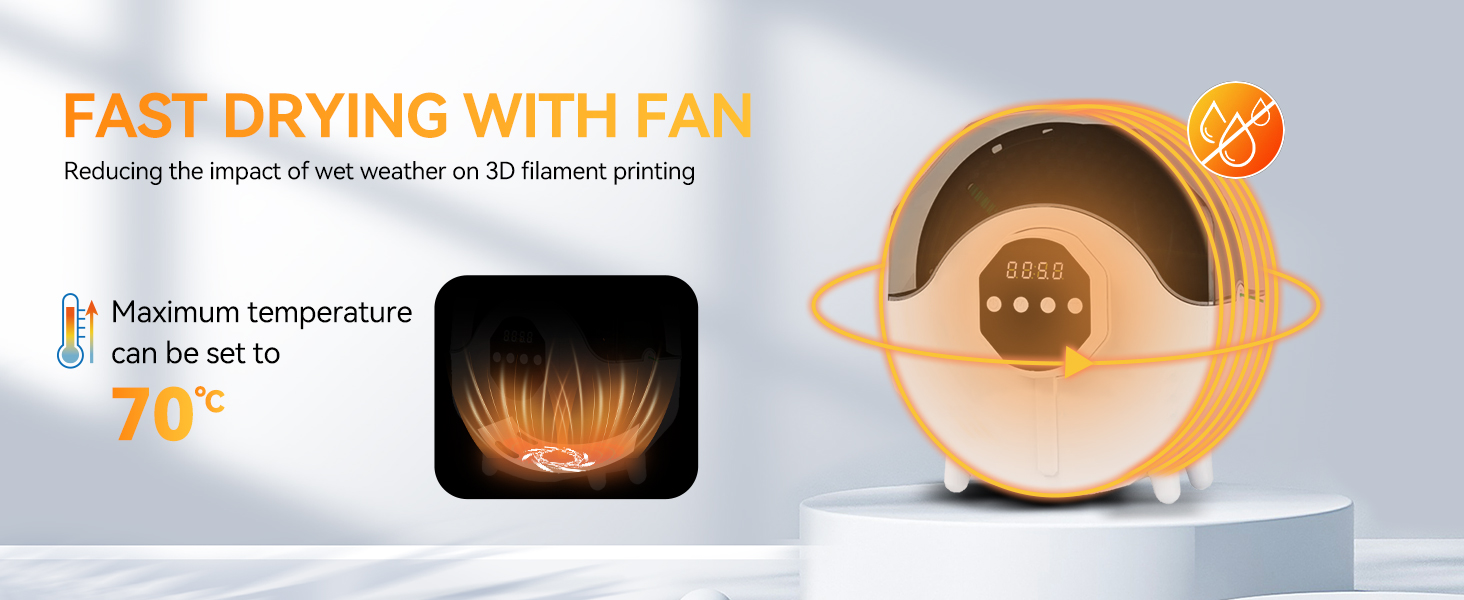 【مجفف الشعيرات وإزالة الرطوبة】يمكن أن يساعدك صندوق مجفف الشعيرات للطابعة ثلاثية الأبعاد على حل مشكلة الخيوط والانسداد وضعف الالتصاق، تسخين محيطي 360 درجة للتجفيف.