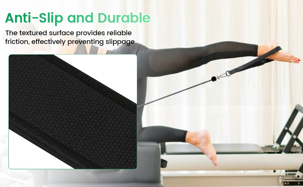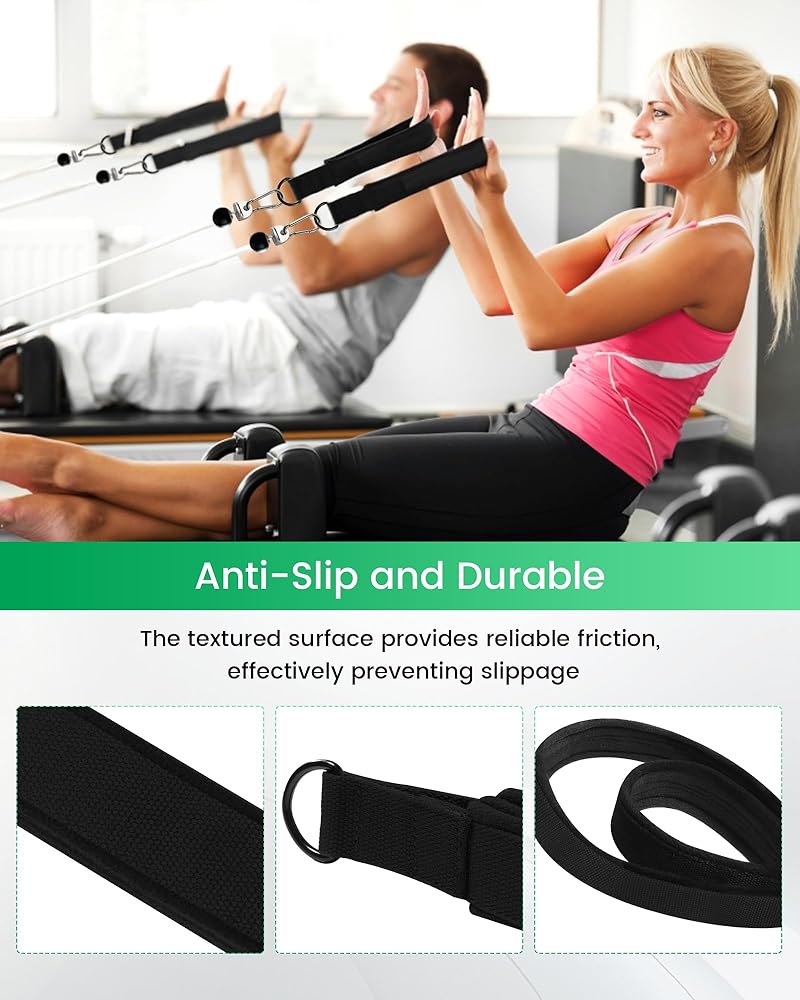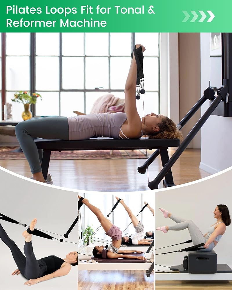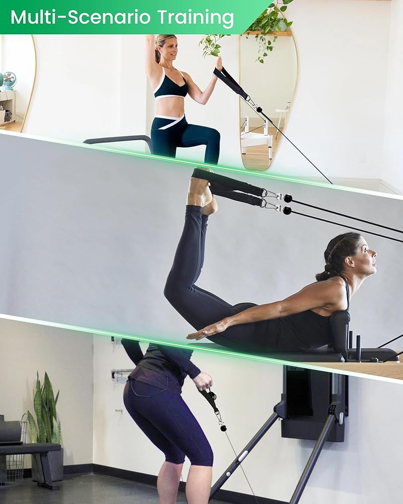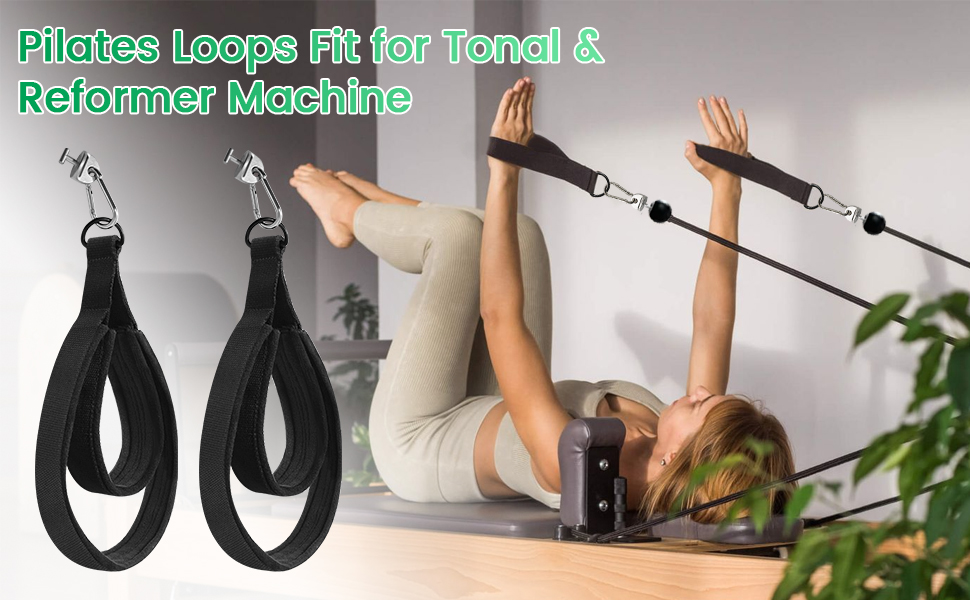 توافق واسع: تتضمن حلقات البيلاتس محول قفل T، وخطافات W/Snap، وأشرطة على شكل حرف D، مما يجعلها متوافقة تمامًا مع المدربين اللونيين، ومعدات الإصلاح والبيلاتس؛ تصميمه خفيف الوزن وقابل للحمل يجعله مثاليًا للاستخدام في المنزل أو صالة الألعاب الرياضية أو السفر.