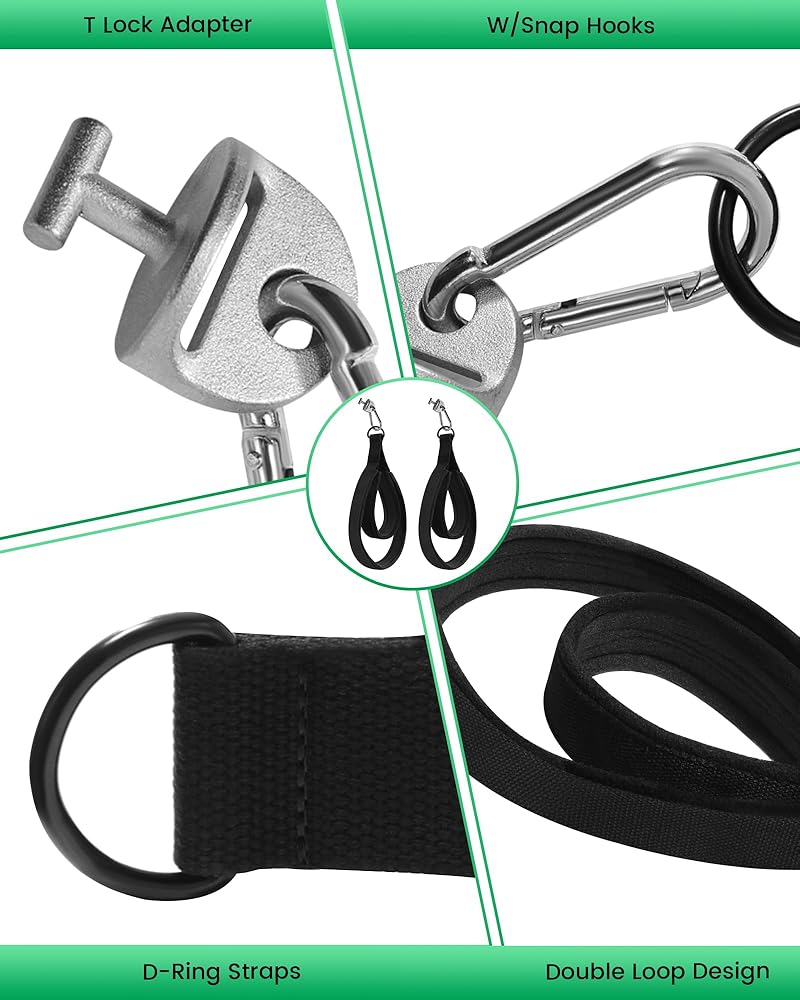 حلقات البيلاتيس مناسبة للأجهزة النغمية والمصلحة، أشرطة بيلاتيس مبطنة ناعمة بحلقة مزدوجة مع محول قفل على شكل حرف T، مع خطافات كبس، وأشرطة على شكل حرف D لملحقات تمارين اليوغا والجيم المنزلي (قطعتان)