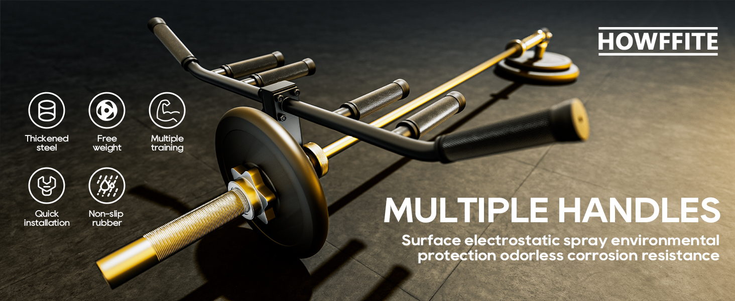 مقبض الألغام الأرضية متعدد القبضة: هناك 3 أنواع من مسافات القبضة، قبضة قريبة وقبضة مركزية وقبضة واسعة تلبي احتياجات التمارين المختلفة. مسافة القبضة القريبة 11 بوصة، مسافة القبضة المركزية 19 بوصة، مسافة القبضة العريضة 34.8 بوصة