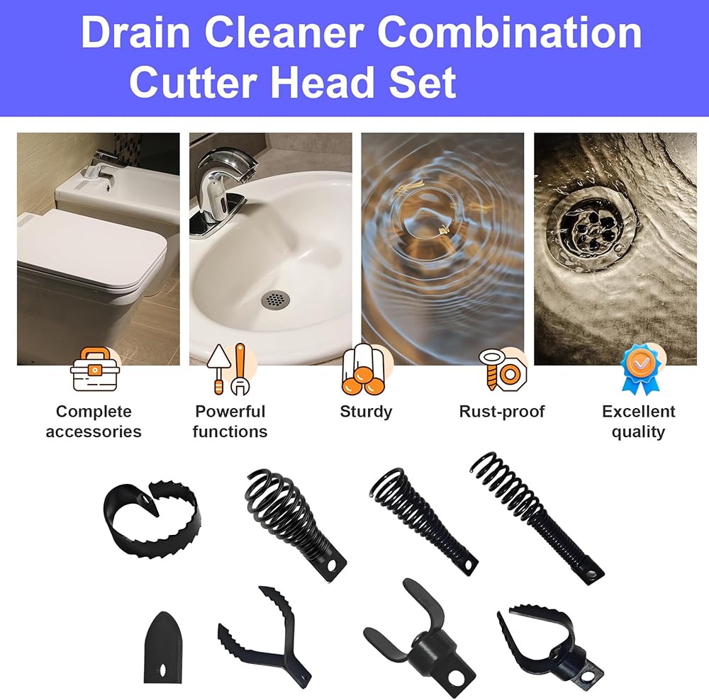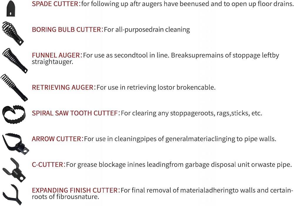 • 【Function】Suitable for 5/16”to 3/4”sewer snake drain cleaning cable ,cleaning various blockages such as tree roots, branches, hair, etc., breaking various greases and hard objects, and effectively expanding and clearing pipes