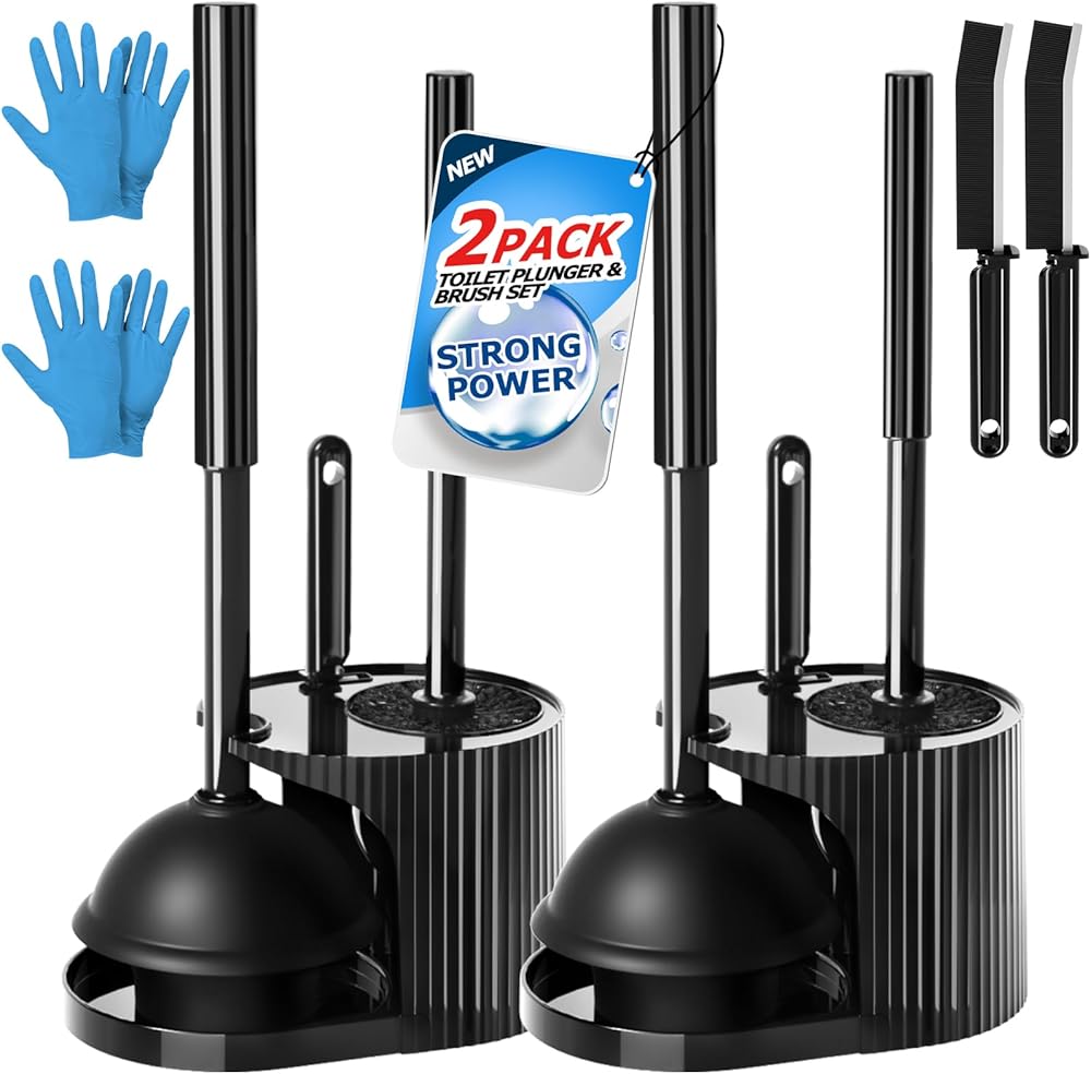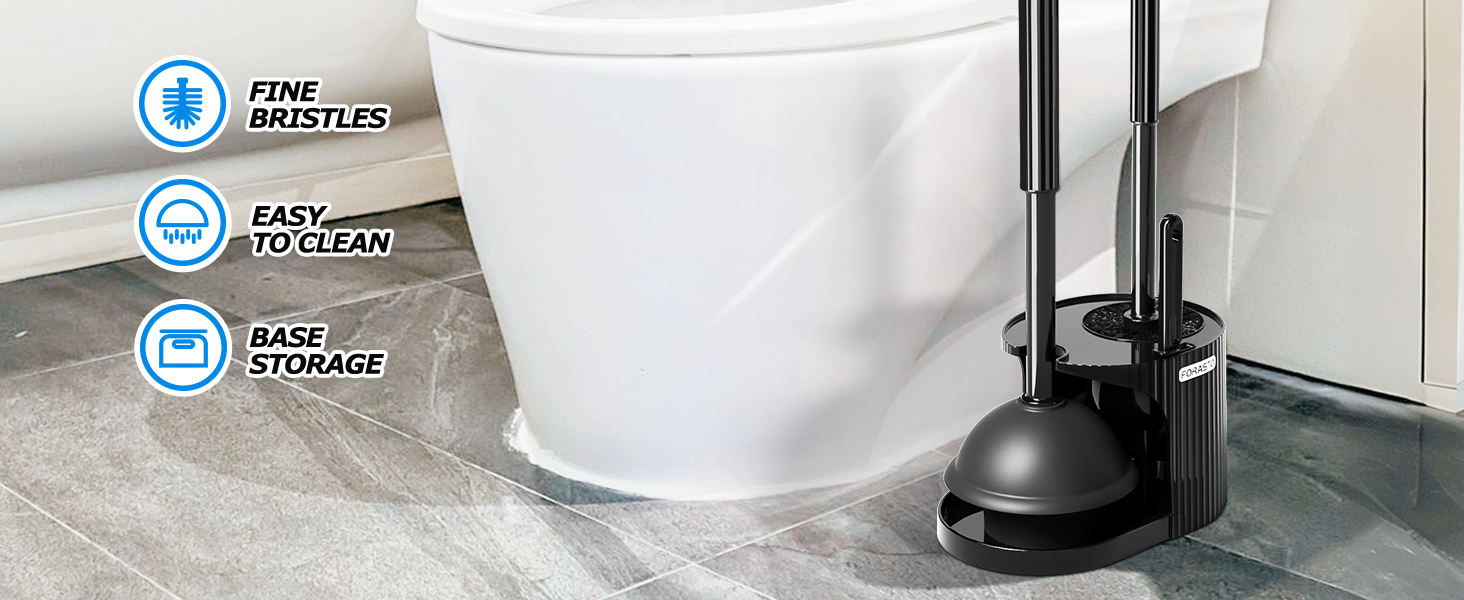 مجموعة فرشاة المرحاض والمكبس: يحتوي هذا المنتج على فرشاة مرحاض ذات شعيرات سميكة، ومكبس مرحاض عالي الشفط بمقبض ممتد، ودعامة ثابتة وفرشاة فجوة الأخدود.