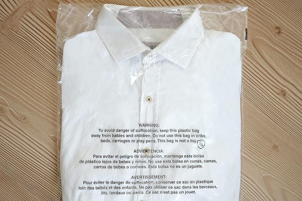Trilingual suffocation warning printed directly on each bag for safety and compliance.