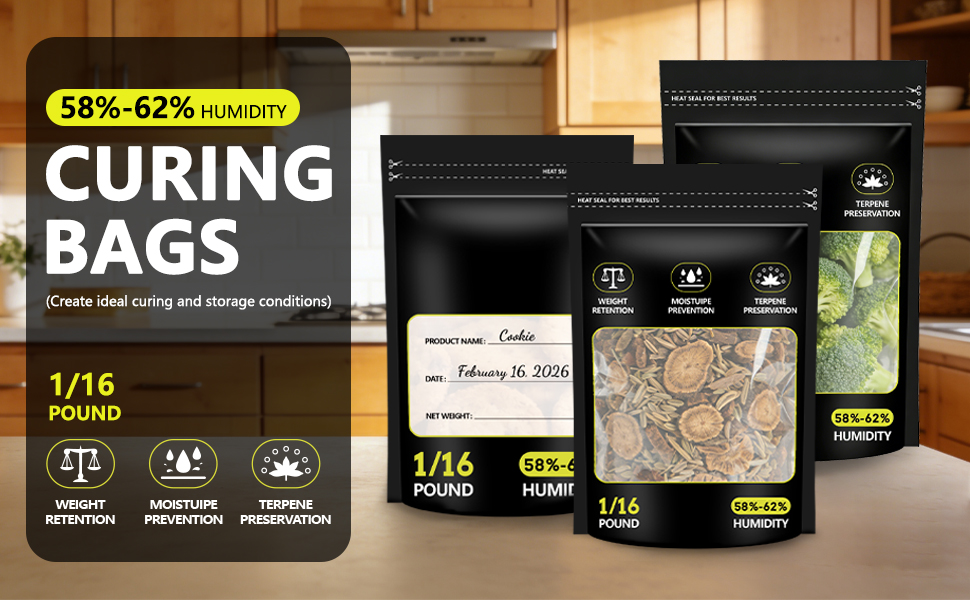 • مادة سميكة متينة مع منطقة ملصق: أكياس معالجة التربين هذه مصنوعة من مادة شديدة التحمل ومقاومة للتمزق مع إغلاق موثوق. يدعم الغلق الحراري للتخزين الممتد، ويتميز بسطح قابل للكتابة لوضع العلامات وتاريخ الحصاد