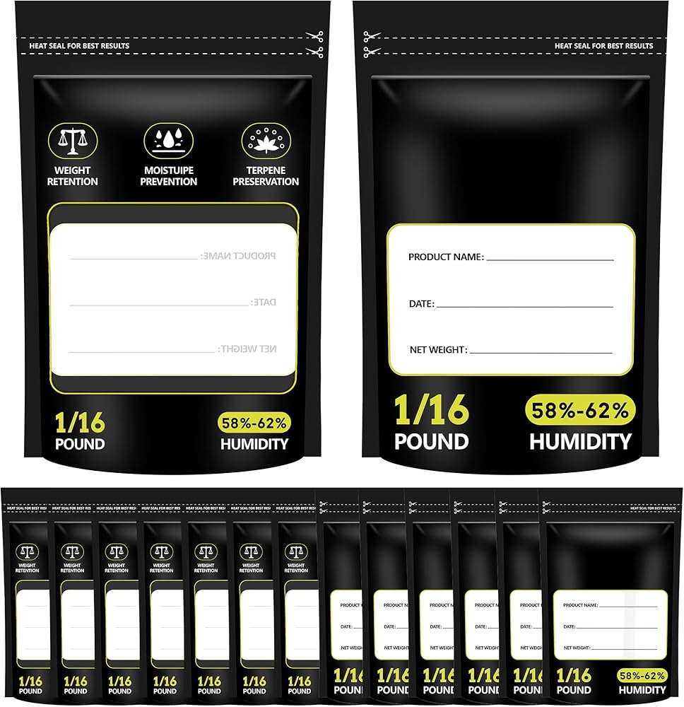 أكياس معالجة وتخزين تربين سعة 1 أونصة، أكياس معالجة بقفل وختم قابلة للإغلاق، أكياس للتحكم في الرطوبة قابلة للغلق بالحرارة، 1/16 رطل، 15 قطعة