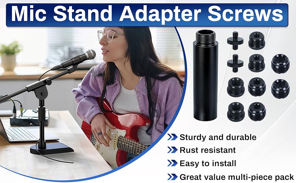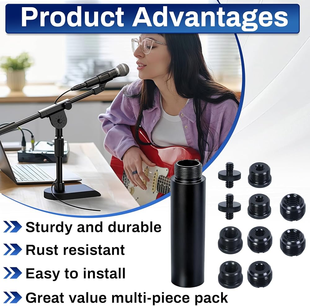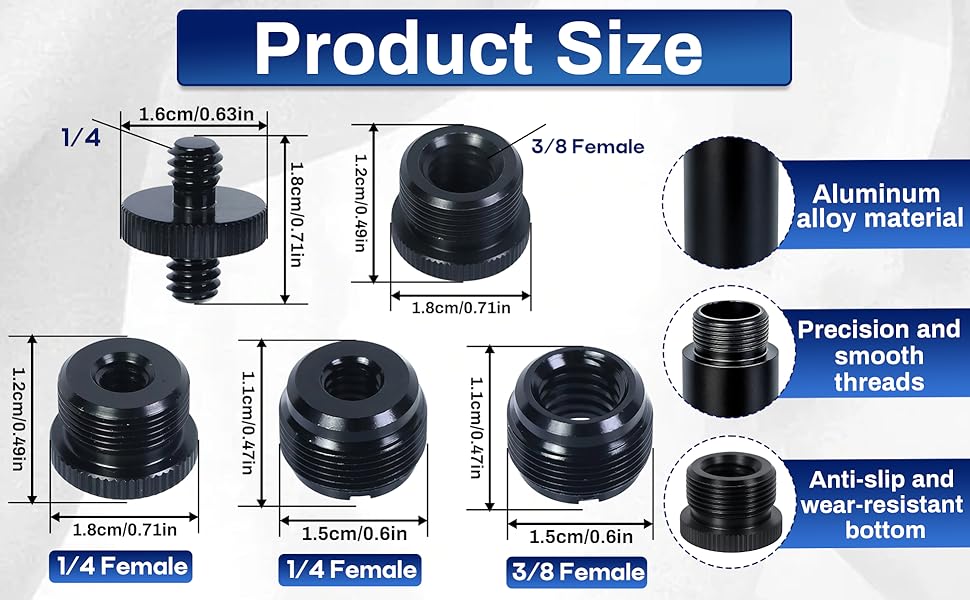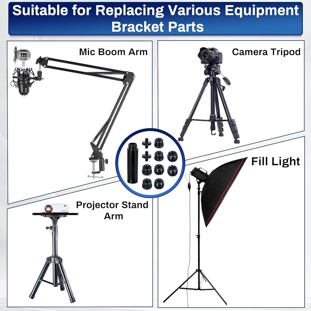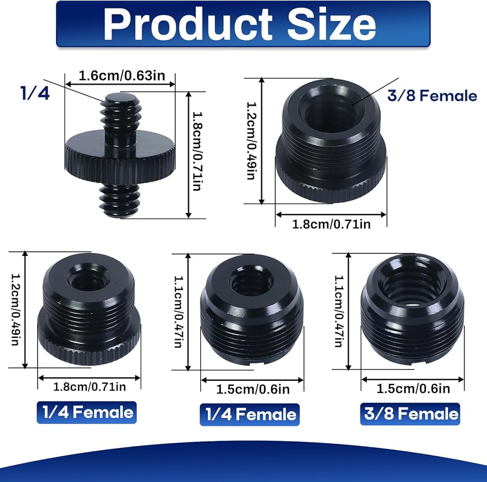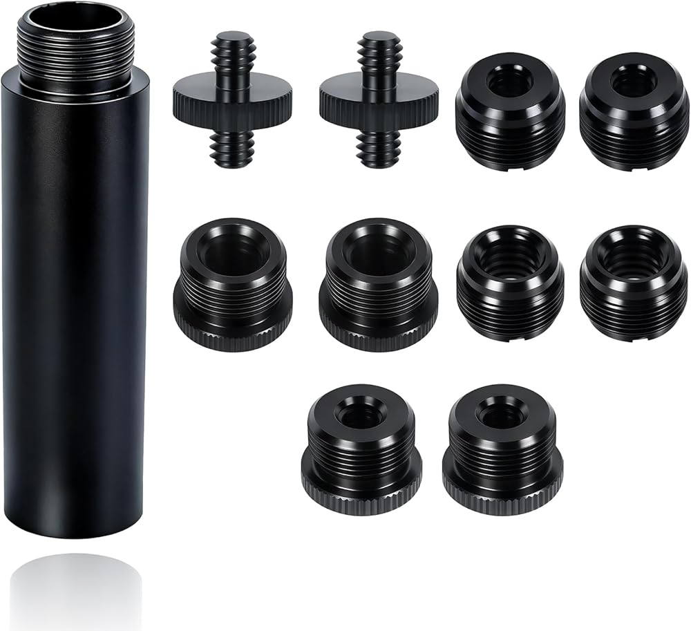 توافق واسع: تتوافق براغي المحول وأنابيب التمديد هذه مع معظم حوامل الميكروفون، والأذرع، وحوامل الكاميرا الثلاثية، وحوامل جهاز العرض، والأذرع الخفيفة، ومشابك الميكروفون، والأجهزة الأخرى ذات الخيوط المطابقة 1/4 بوصة، 3/8 بوصة، أو 5/8 بوصة