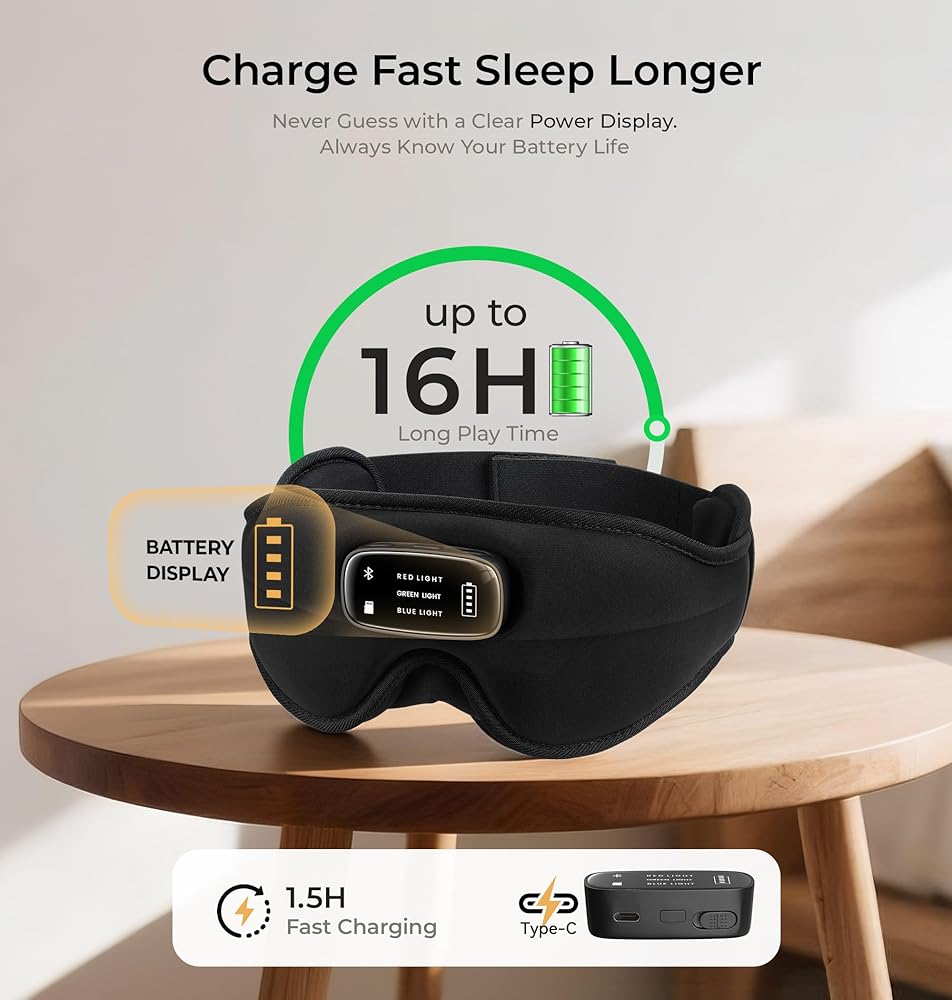ملاذ النوم القابل للتخصيص بالكامل: استمتع بتجربة مثالية وشخصية. تنزلق سماعات الرأس القابلة للتعديل للعثور على الوضع الأمثل للحصول على راحة وصوت فائقين. اختر من بين 3 أوضاع إضاءة (أحمر، أخضر، أزرق) لضبط الأجواء التي تريدها. يقترن قناع النوم البلوتوث الخاص بنا بشريحة بلوتوث مطورة للحصول على صوت غني ومستقر، مما يخلق ملاذًا مثاليًا للاسترخاء والنوم المريح.