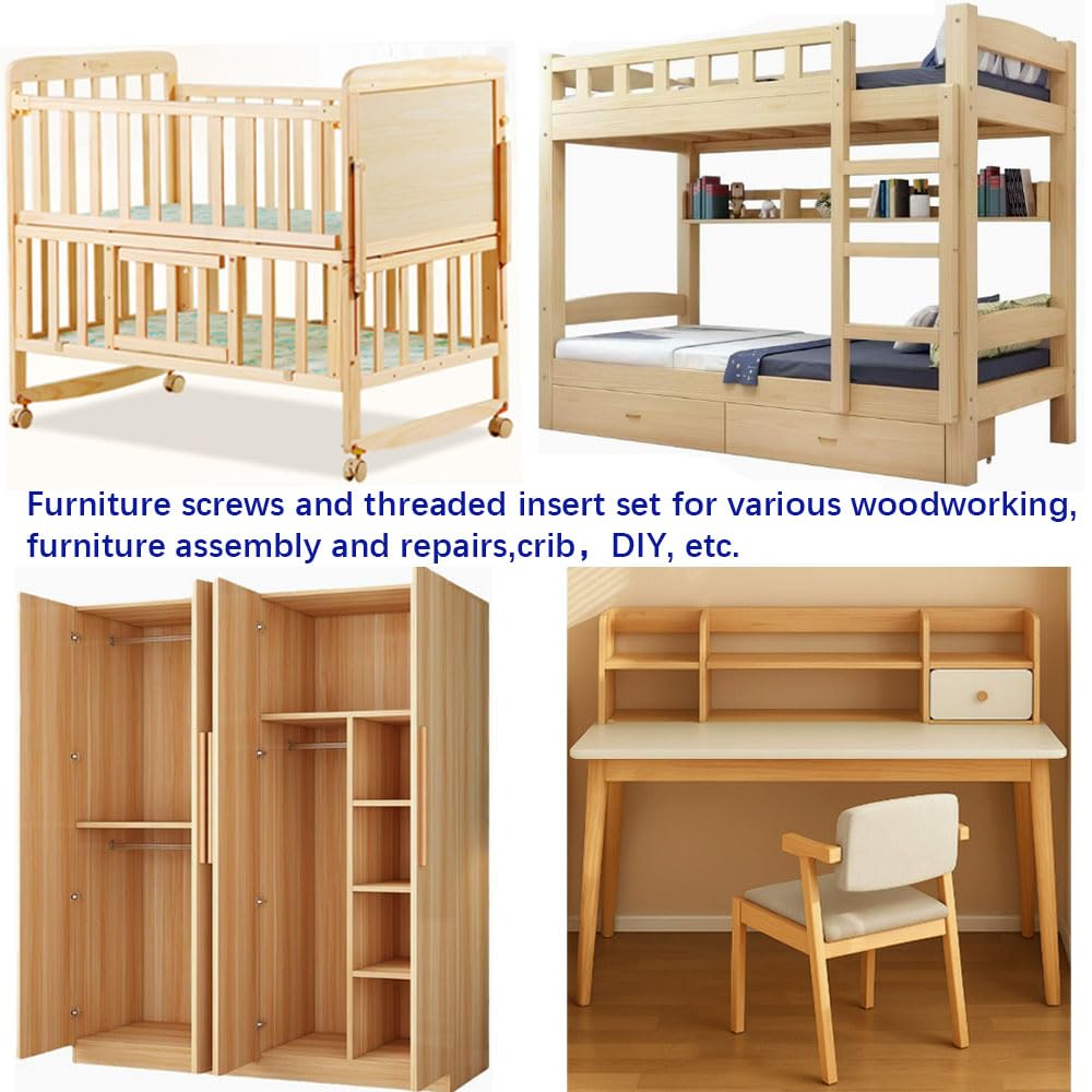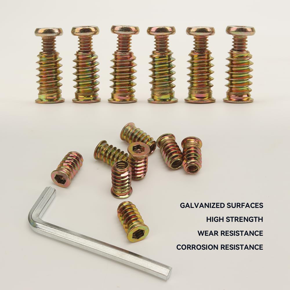 Material:Crafted from galvanized carbon steel, these screws and inserts provide superior wear resistance, anti-corrosion properties, and rust prevention. Their high-strength construction ensures long-lasting, stable connections for furniture