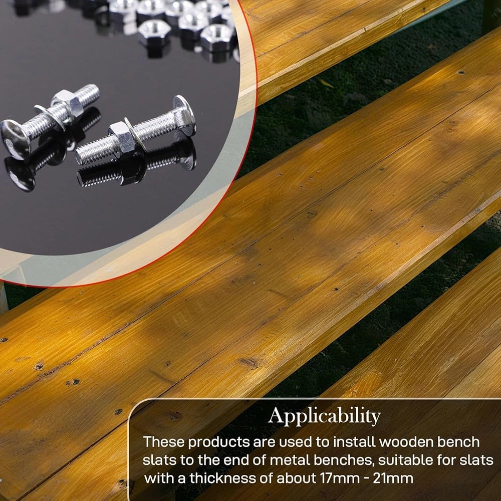 Product Description: Professional-Grade Fastening Solution for Metal-Framed Benches Experience the perfect fusion of form and function with our specialized Bench Slats Replacement Kit, specifically designed for attaching wooden slats to metal bench frames. This complete hardware solution addresses the exact needs of outdoor furniture maintenance, particularly for rustic oak and hardwood benches requiring 17mm-21mm thickness compatibility. Our M6x35mm fastener set includes bolts, nuts, and flat washers that work together to create secure, wobble-free connections between wood slats and metal bench ends. The flat washers provide essential load distribution, preventing wood splitting and ensuring long-term structural integrity. The galvanized zinc plating offers superior protection against rust and corrosion, making these fasteners ideal for outdoor use in all weather conditions. Ideal Applications: Perfect for attaching wood slats to wrought iron or steel bench frames Specifically designed for 17mm-21mm thick wooden slats Excellent for rustic oak, hardwood, and standard wood benches Ideal for park benches, garden seating, and public outdoor furniture Suitable for DIY enthusiasts and professional maintenance crews Technical Specifications: Bolt Size: M6 x 35mm Material: Galvanized Steel Finish: Silver Zinc Plating Washer Type: Standard Flat Washers Quantity: 50 Complete Sets Compatible Slat Thickness: 17-21mm Color: Silver Quality Assurance: Every component undergoes rigorous quality checks to ensure consistent sizing, proper threading, and complete corrosion resistance. We stand behind our products with full manufacturer support. Restore your outdoor benches to their original stability and safety with confidence. This professional-grade hardware kit provides everything you need for durable, long-lasting bench repairs that withstand the test of time and elements.