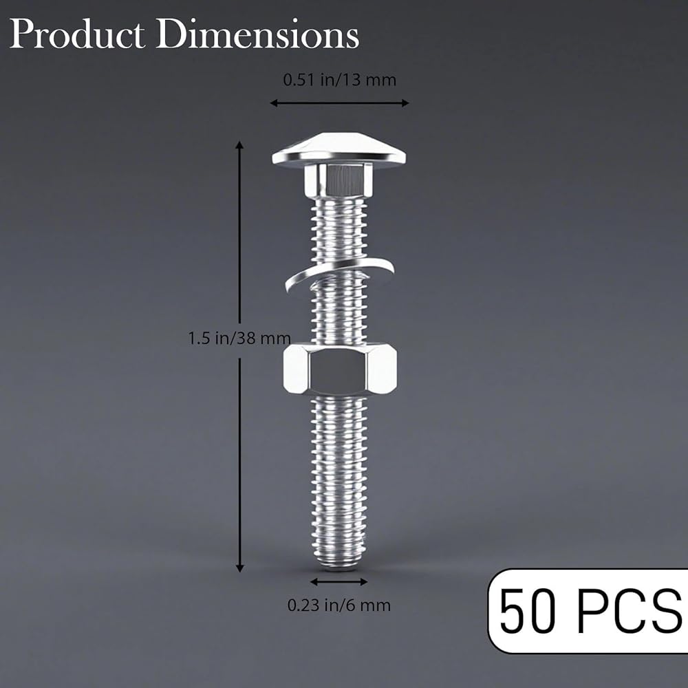 Complete 50-Piece Hardware Set Includes everything needed: 50 M6x35mm bolts, matching nuts, and flat washers - providing full replacement solution for multiple bench repair projects