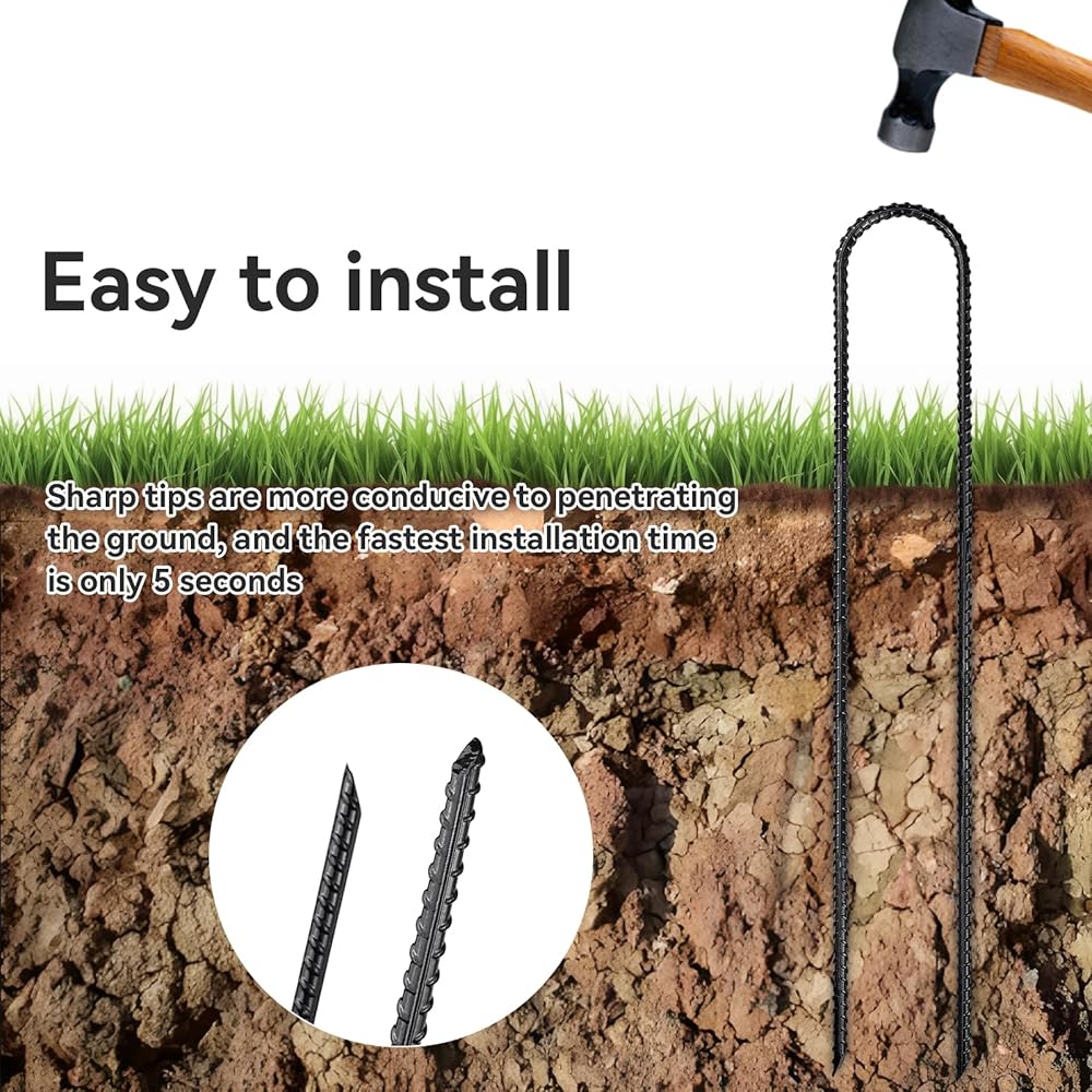 U-Shaped Design: The U-shaped rebar stakes offer a sturdy grip and easy installation into various soil types.
