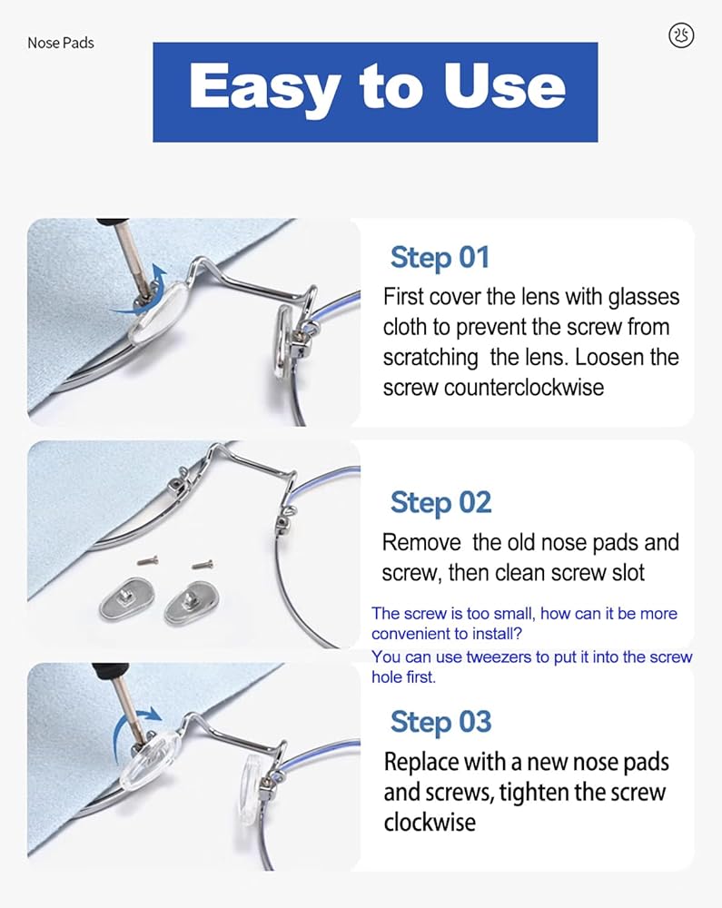Package Included: 20 x Nose Pads, 10 x Tiny Screws, 1 x Micro Screwdriver, 1 x a portable storage case.