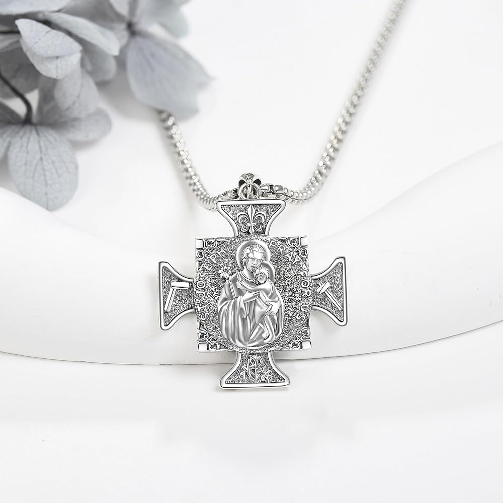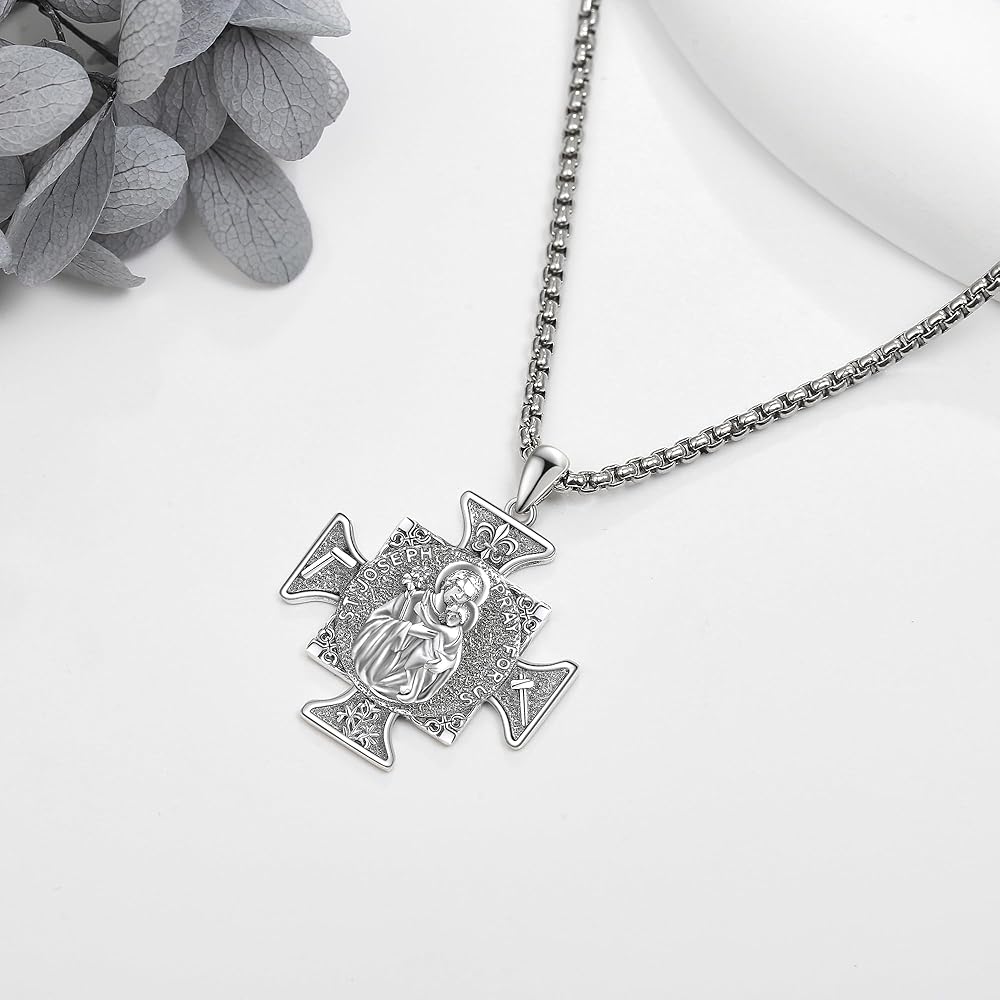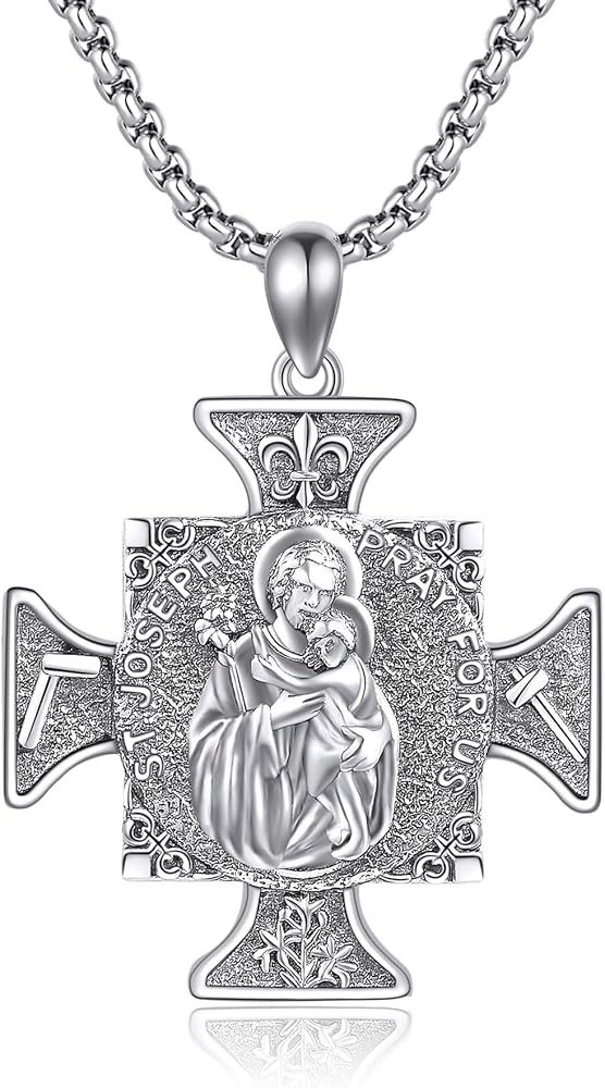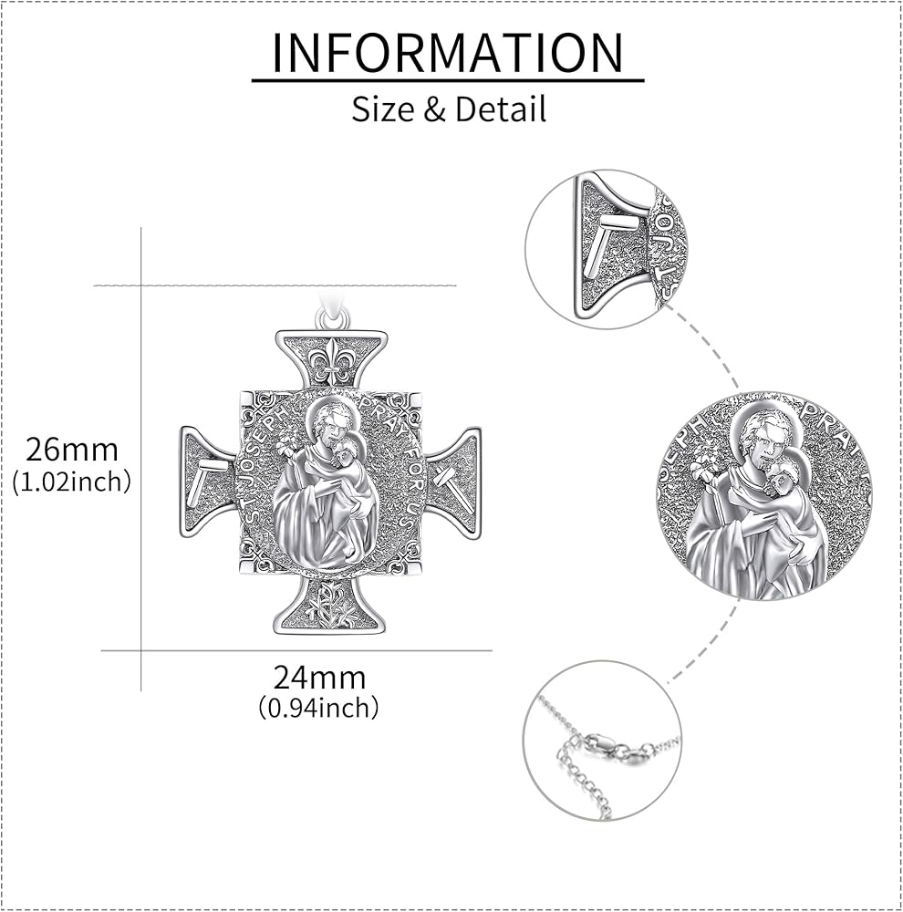 🕆قلادة متقاطعة: 26*24 مم (1.02*0.94 بوصة) طول السلسلة من الفولاذ المقاوم للصدأ: 22 بوصة+2 بوصة موسع. قلادة القديس يوسف قابلة للإزالة من السلسلة. العبوة: 1* قلادة من الفضة الإسترلينية، 1* قطعة قماش تلميع، 1* صندوق هدايا رائع.