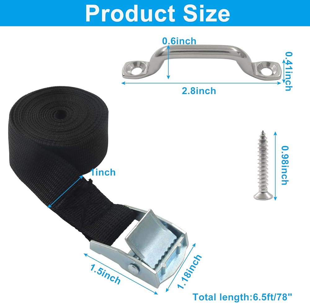 Complete Accessory Set: Each battery strap kit includes two 78-inch (approximately 198cm) nylon straps (1 inch/2.54cm wide), four stainless steel brackets, and eight stainless steel screws, facilitating smooth installation with all necessary hardware.